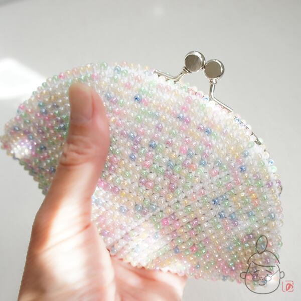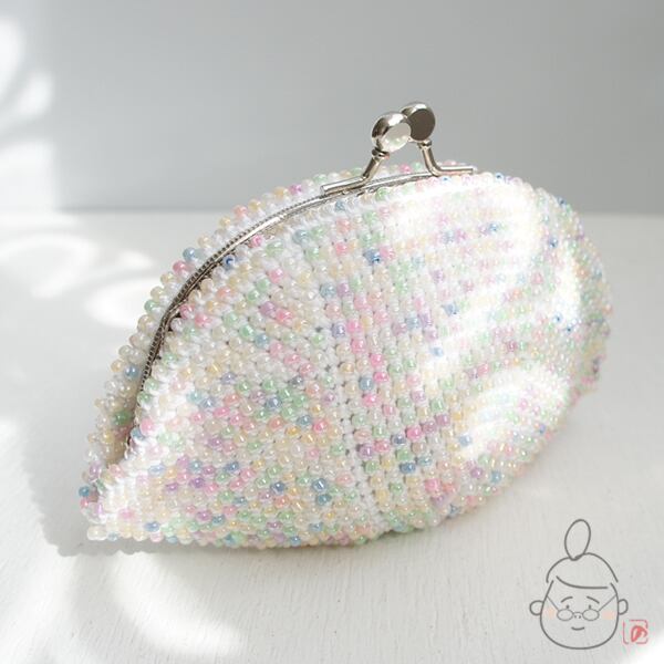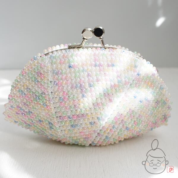 ばあば作☆☆さらに大きめビーズのがま口(パステルシュガー・1332)