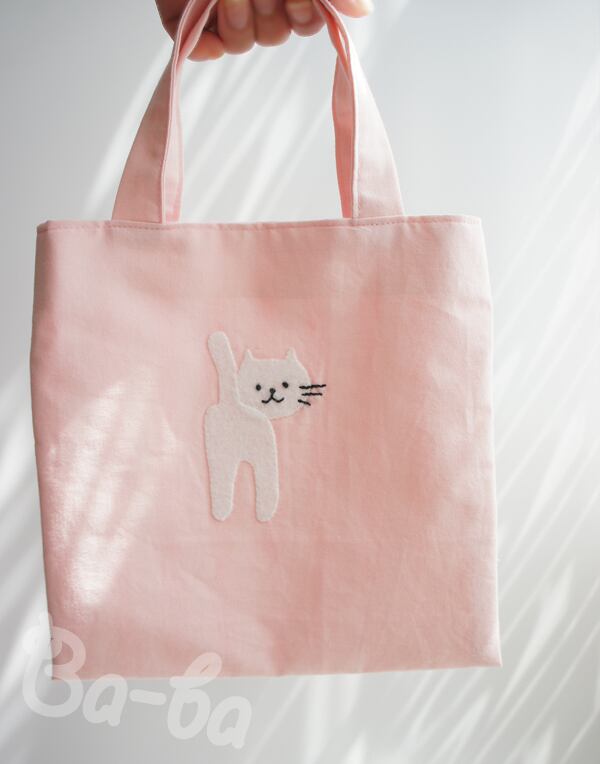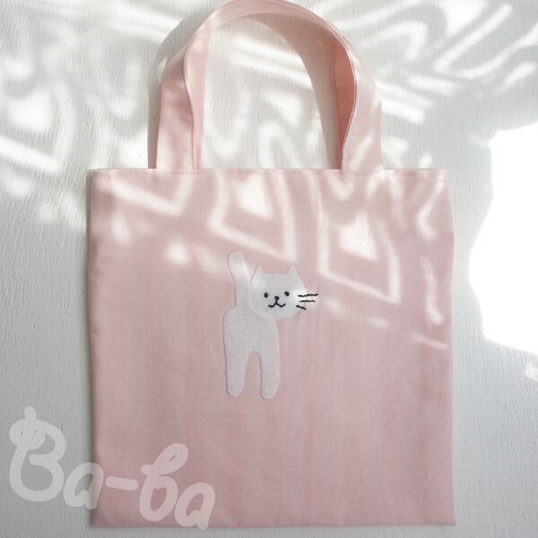 送料無料♪ ばあば作・ふりかえるシロの手さげバッグ(ピンク・RB30)