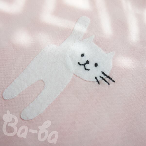 素材 : コットン布(ピンク及び白・ピンクストライプ)、フェルトアップリケ