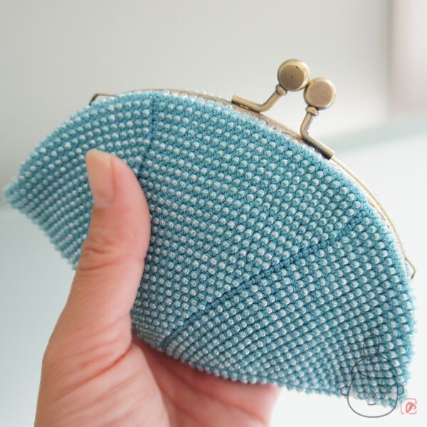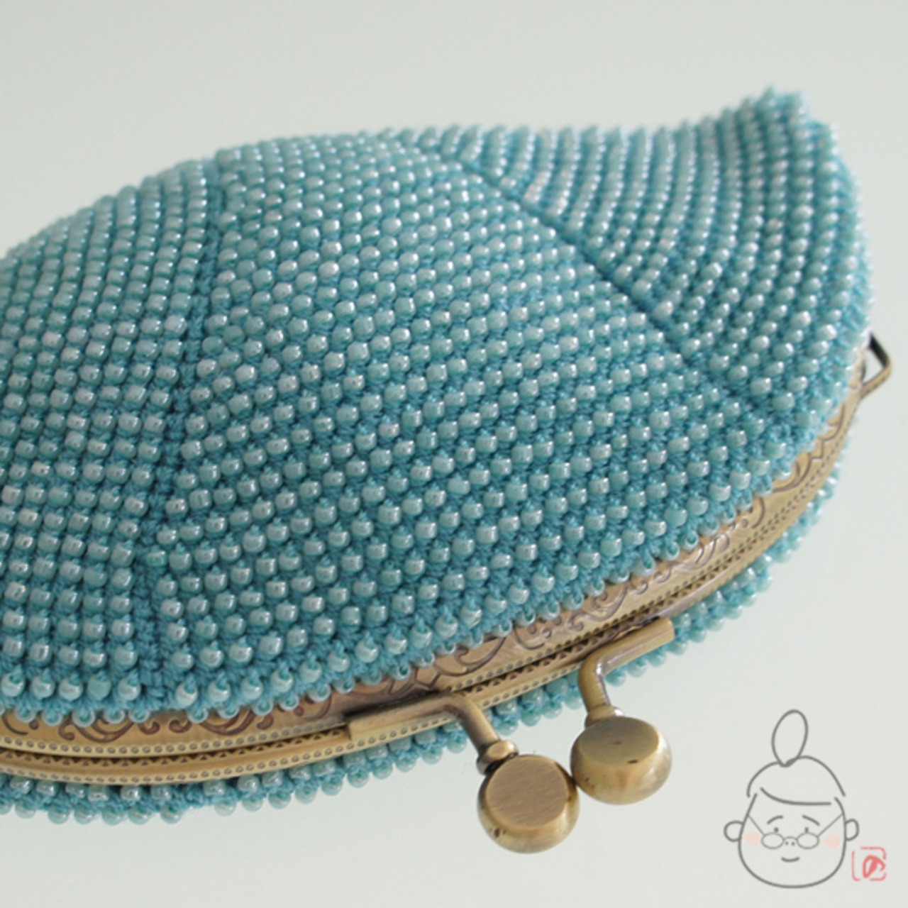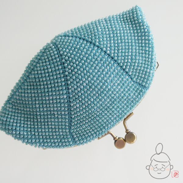 ばあば作☆シードビーズのさらに大きめがま口(aquablue・1317)