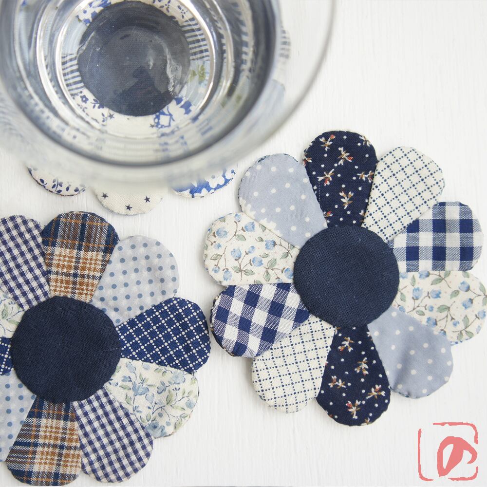 M. パッチワークのコースター3枚組(菊花・FC-r)