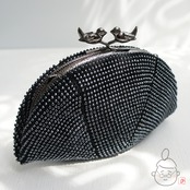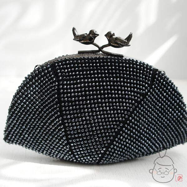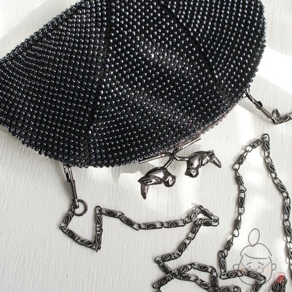 口金 : メタルブラック、小鳥のつまみ、12.5cm、くし型、両カン