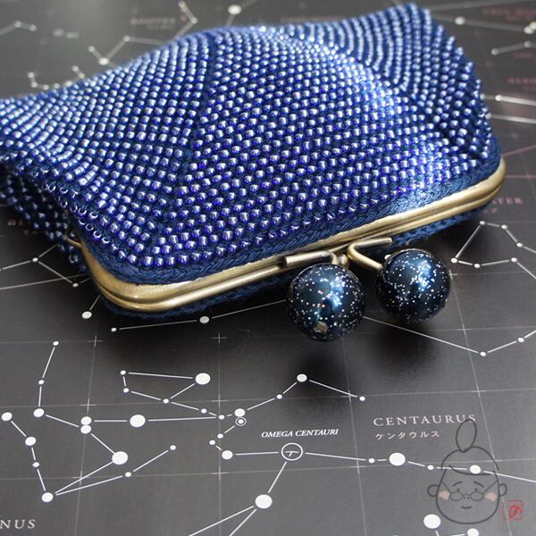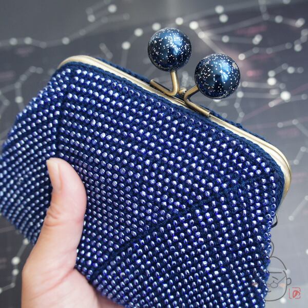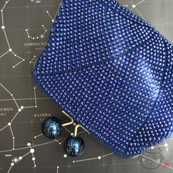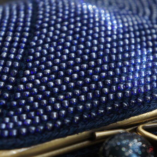 ネイビークリアの3mmビーズを、ひとつぶづつ全面に編み込みました。