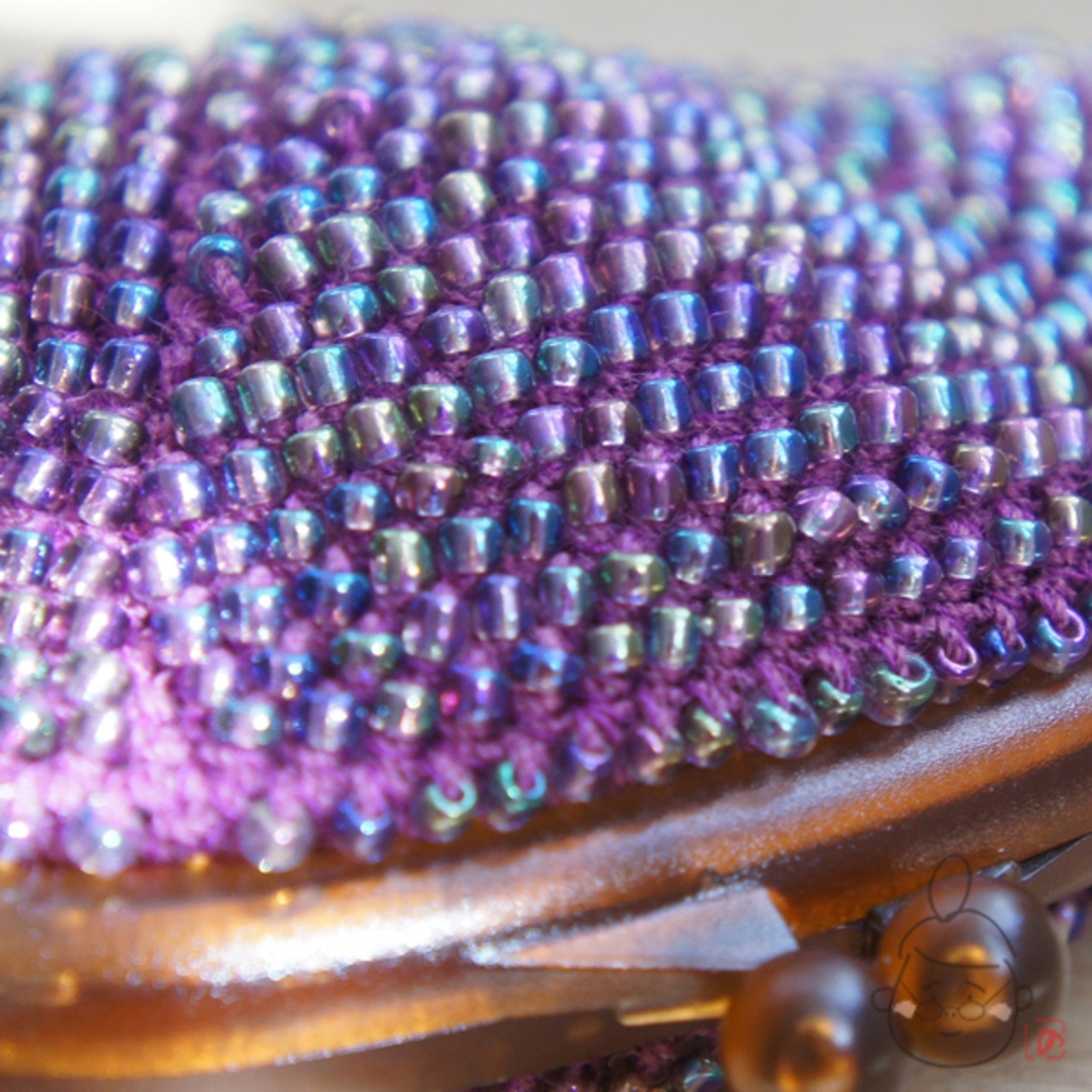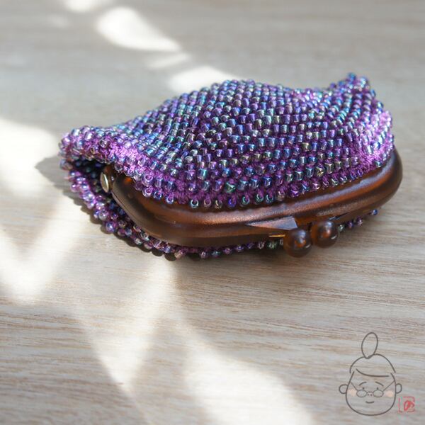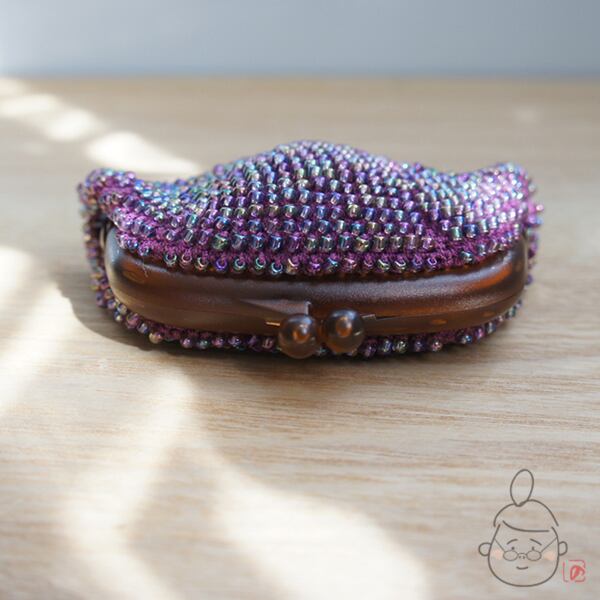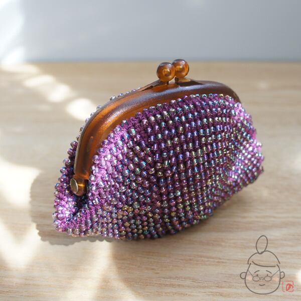 ガラスビーズをひとつぶづつ編み込んだがま口です。