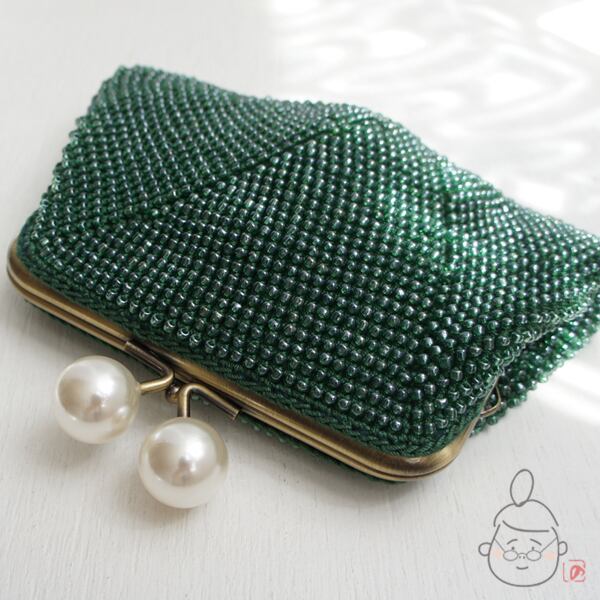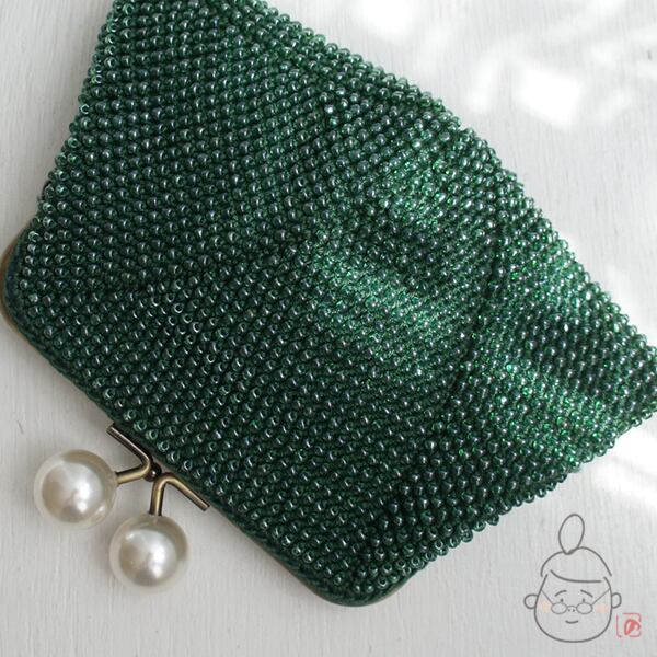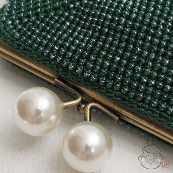 ばあば作☆☆さらに大きめパールのスクエアがま口 (深碧・1218)