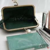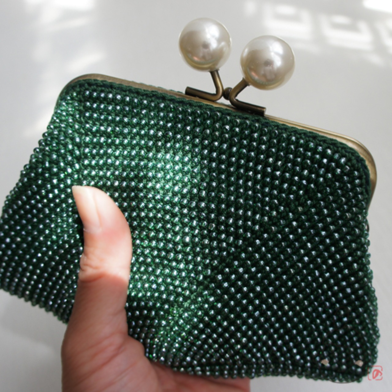 パールつまみの口金は12.5cm角形を使用し収納力バツグン、なんでもいろいろ入ります。