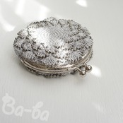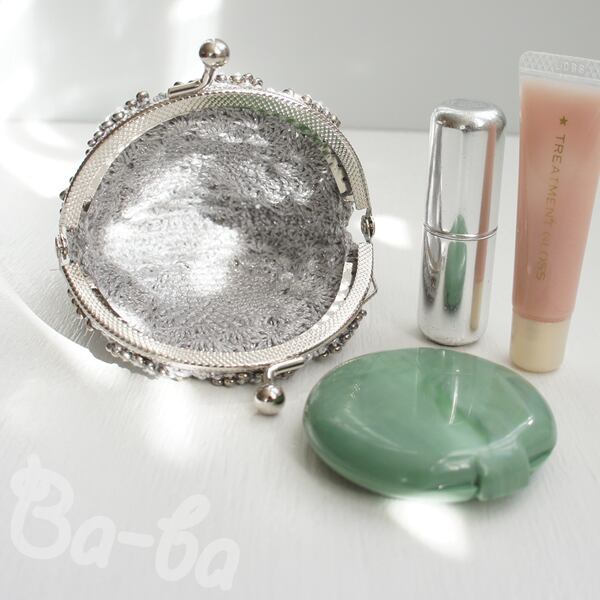 口金 : 柄入りシルバー、8.5cm、丸型、片カン