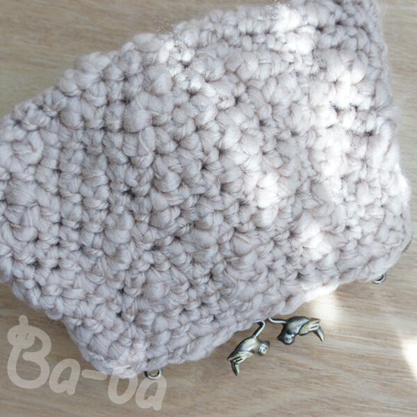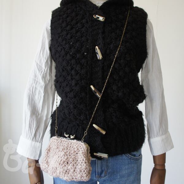 スラブヤーンのふんわりとした編み地と組み合わせました