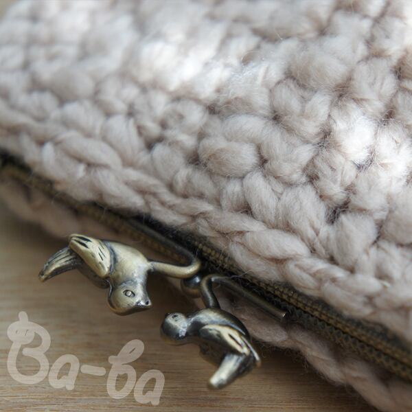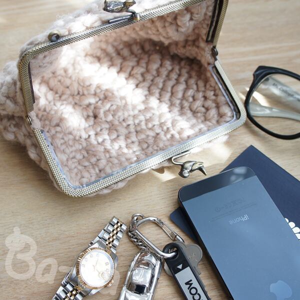縫いつけ口金を使用し、本体としっかり固定しています。