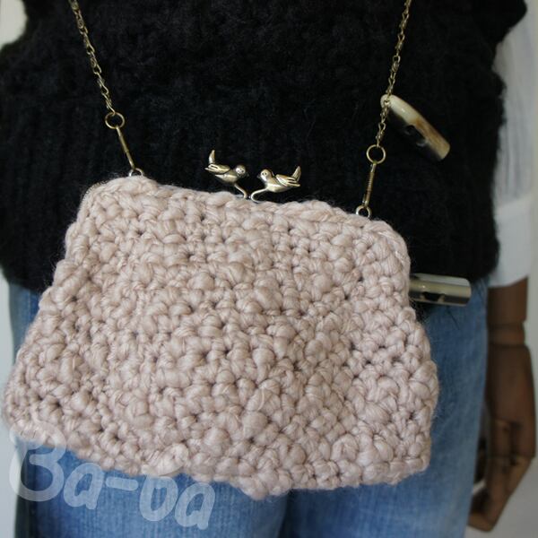 ばあば作・小鳥のふわふわプチバッグ(sandbeige・C1304)