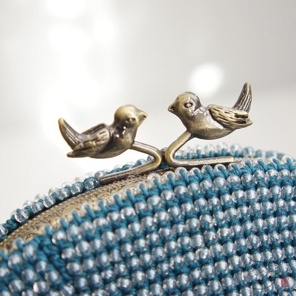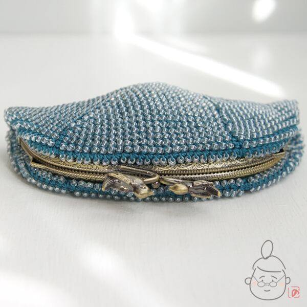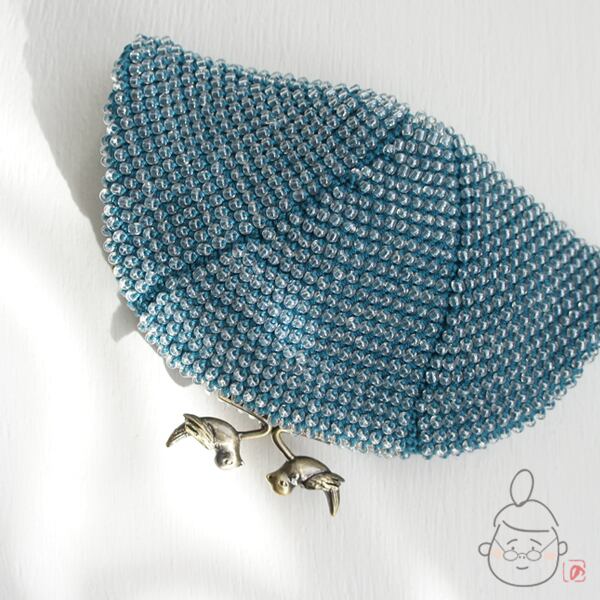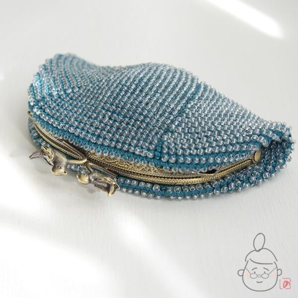 ばあば作☆☆さらに大きめ☆ガラスビーズがま口(oiseau bleu・1362)