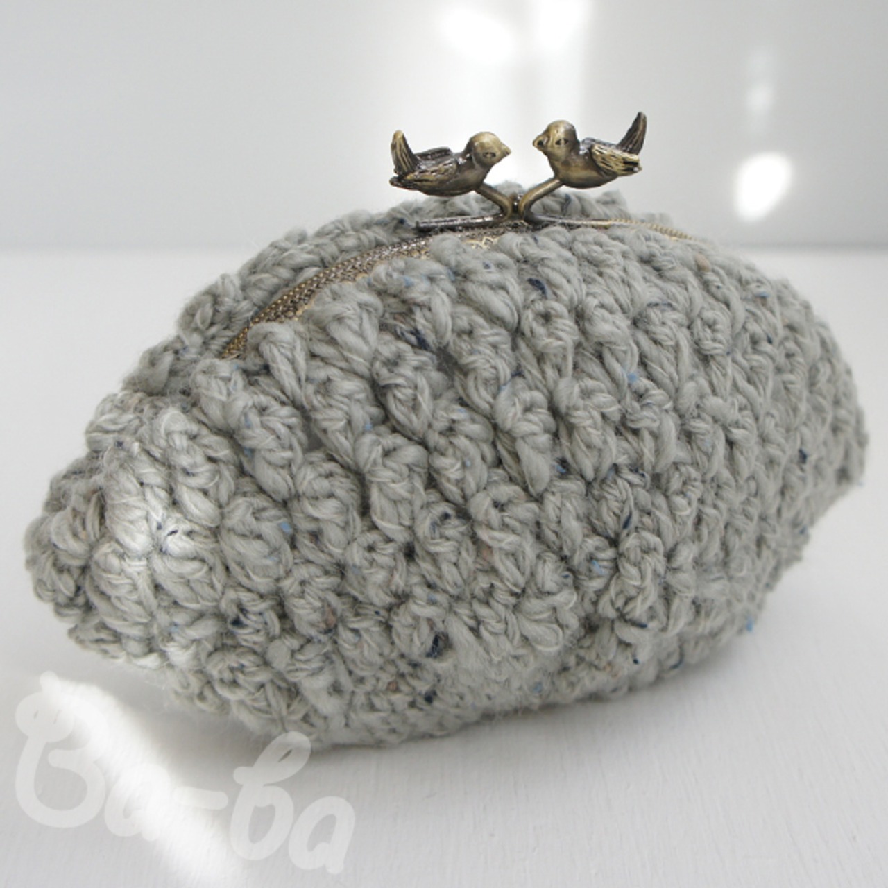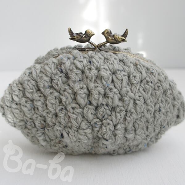ばあば作、さらに大きめ♪小鳥のパプコーン編みがま口(nuageux・C1384)