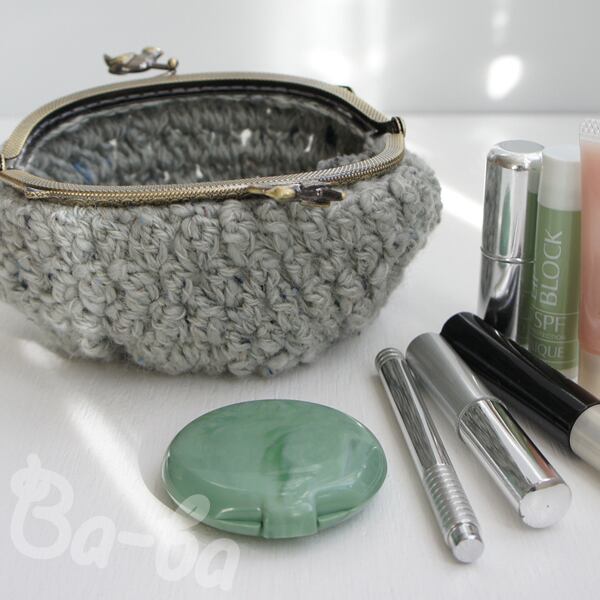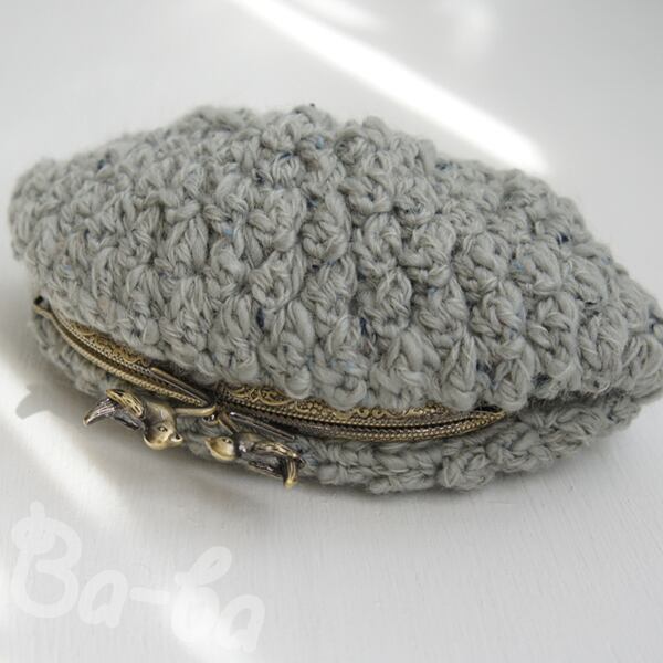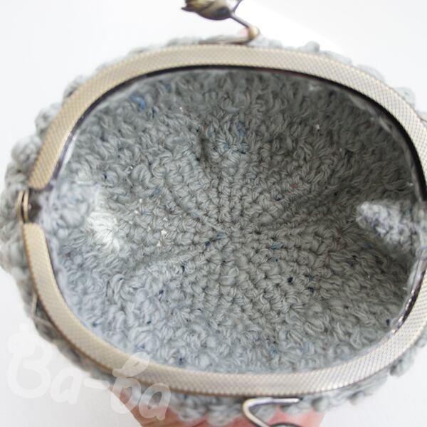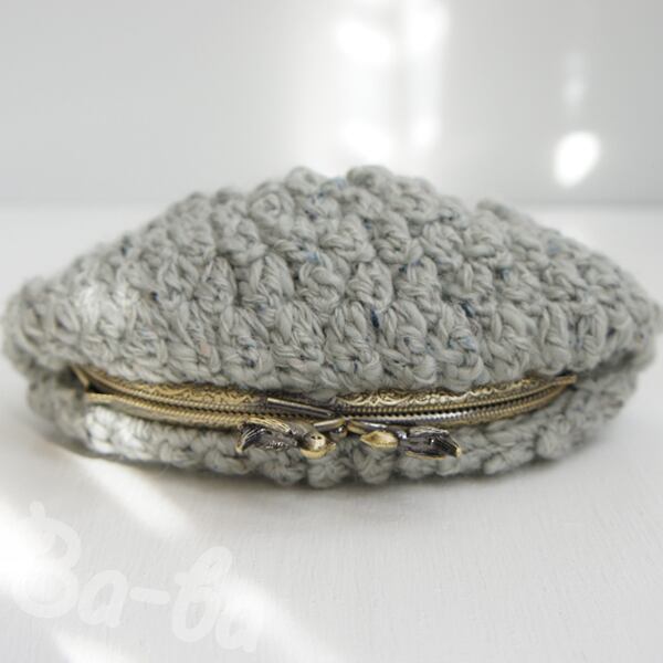 「パプコーン編み」の編み地をがま口に仕上げました。