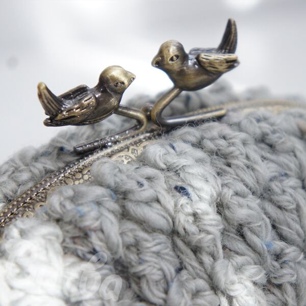 口金 : アンティークゴールド、小鳥のつまみ、12.5cm、くし型、両カン
