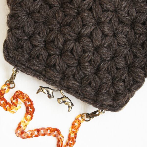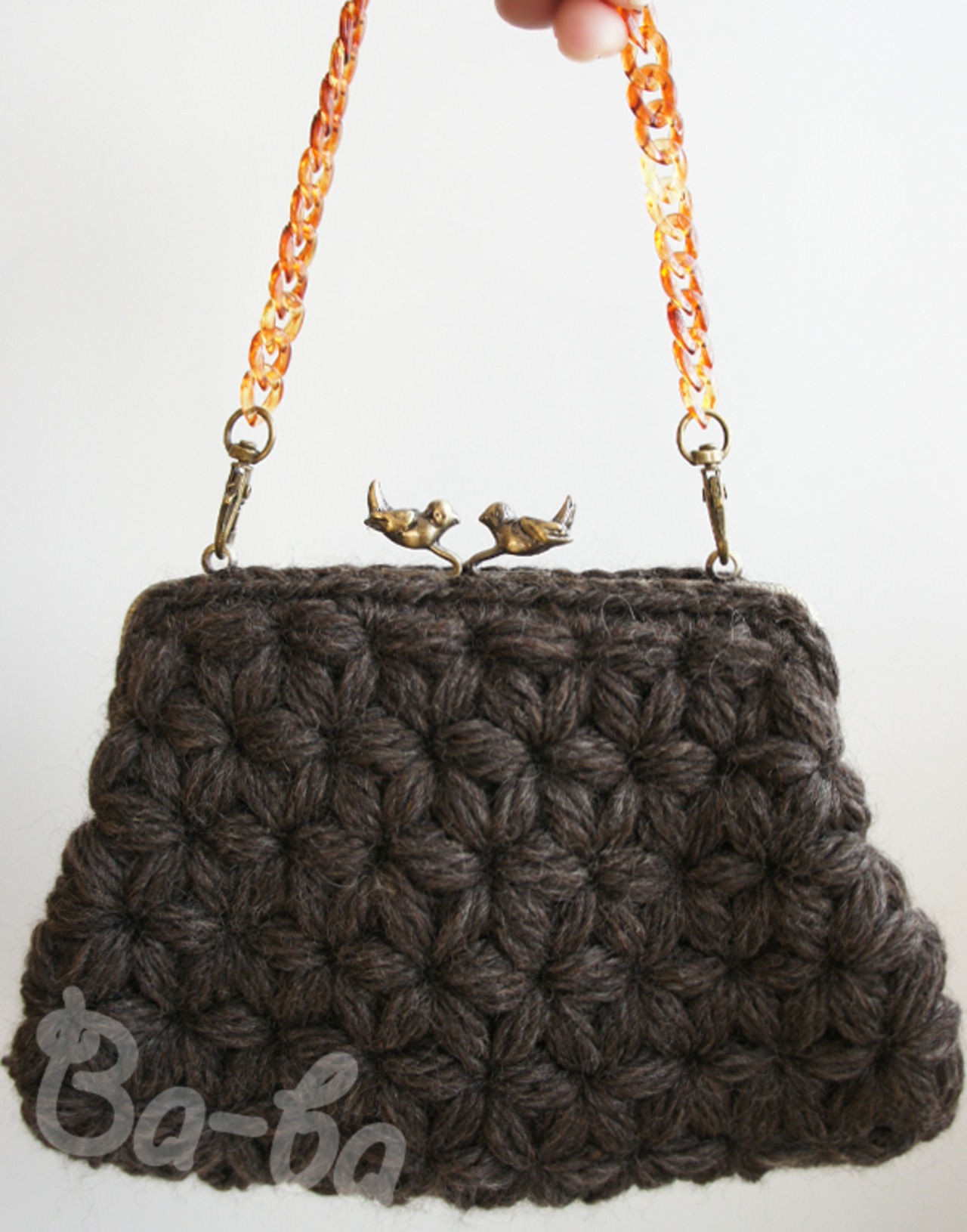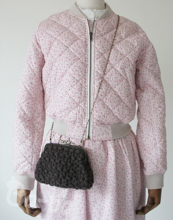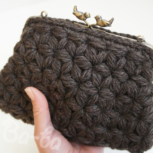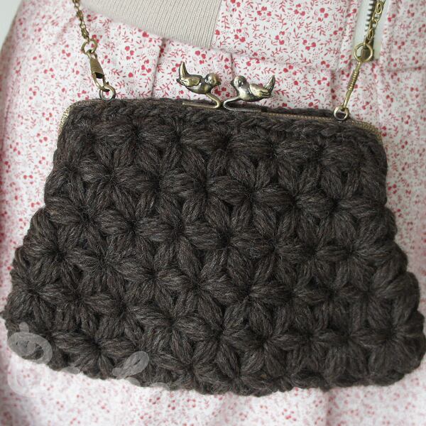 ばあば作・小鳥のリフ編みプチバッグ(maroonfoncé・C1370)