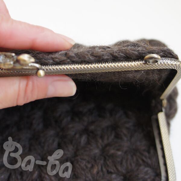 縫いつけ口金を使用し、本体としっかり固定しています。