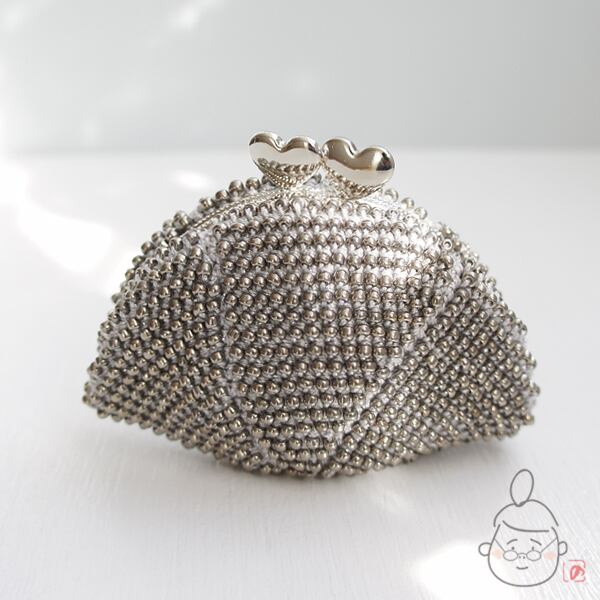 ばあば作♥ガラスビーズのハートがま口(hopea・1352)