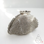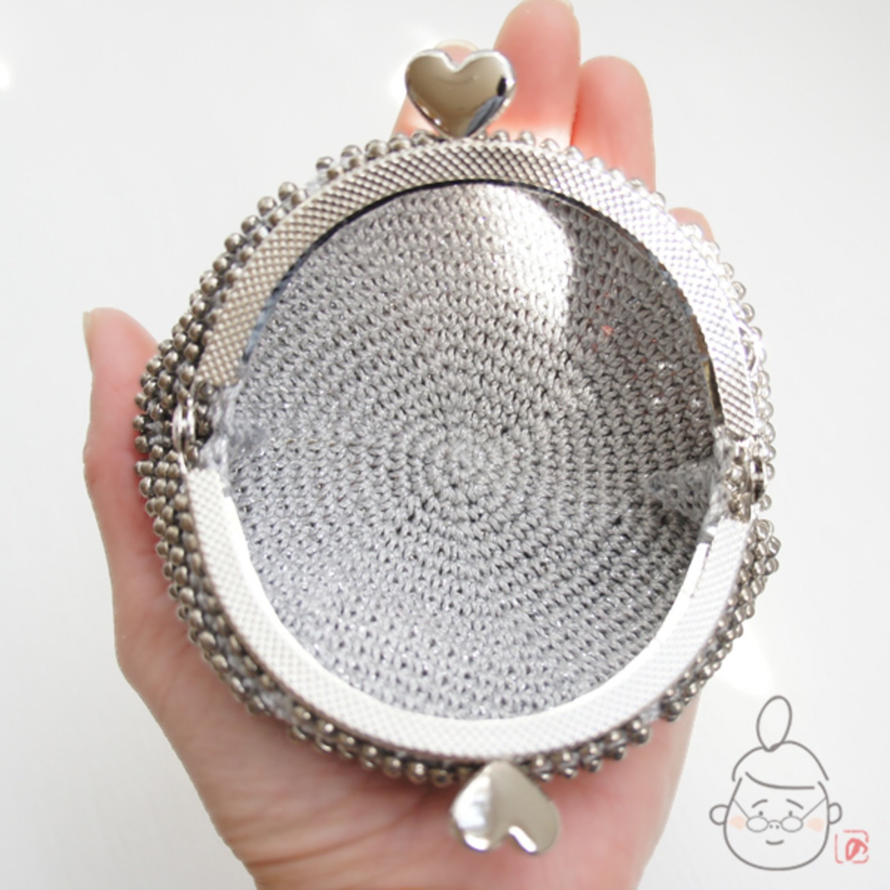 口金 : 柄入りシルバー、ハートつまみ、8.5cm、丸型、片カン