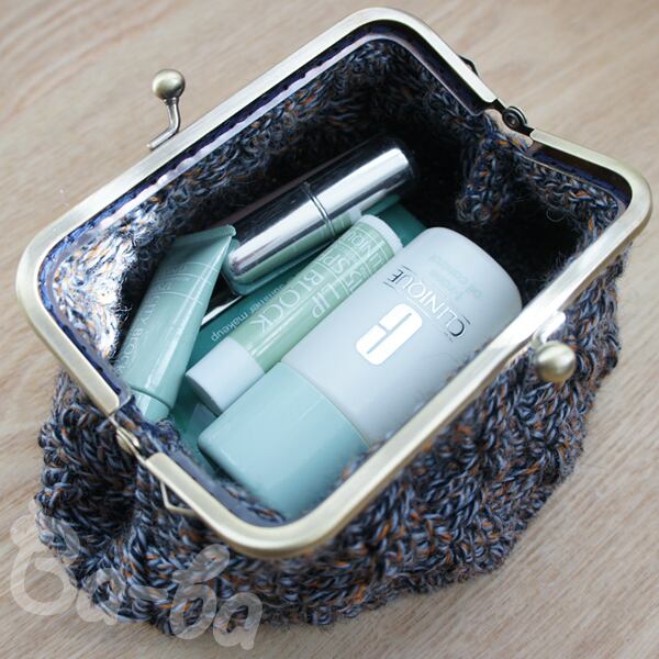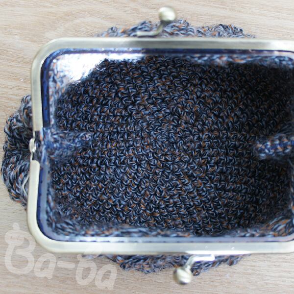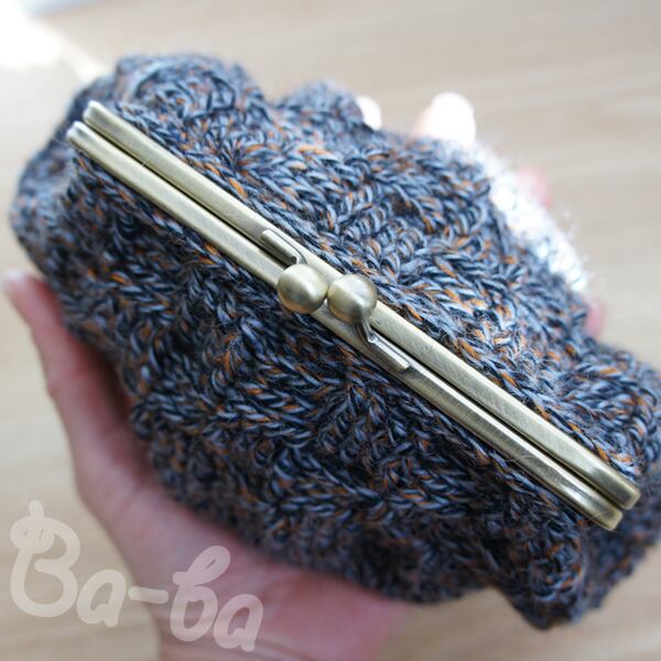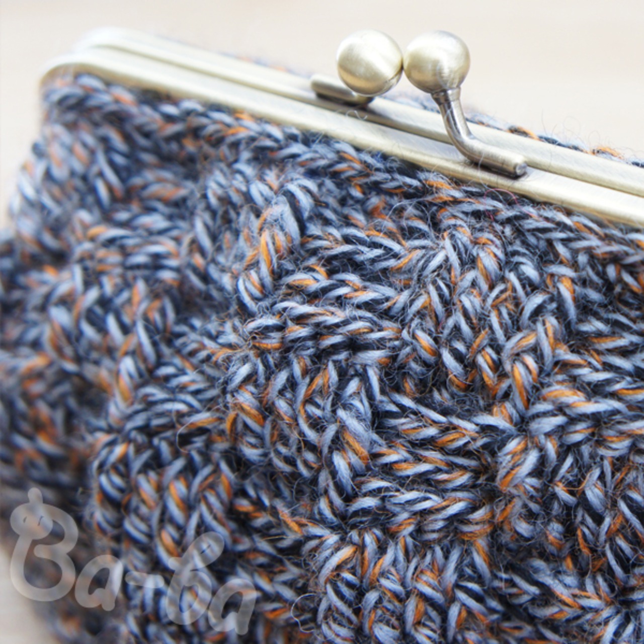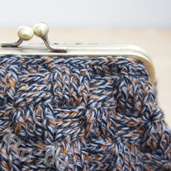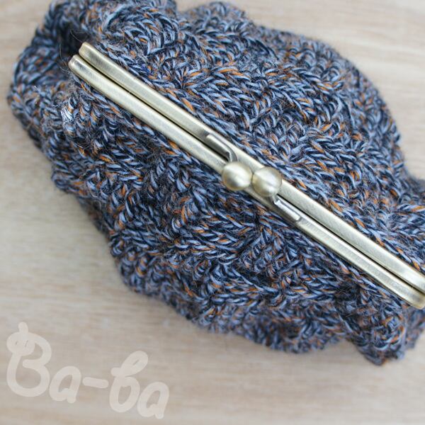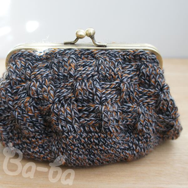 ふんわりと暖かいウールの毛糸を格子模様に編み上げ、がま口に仕上げました。