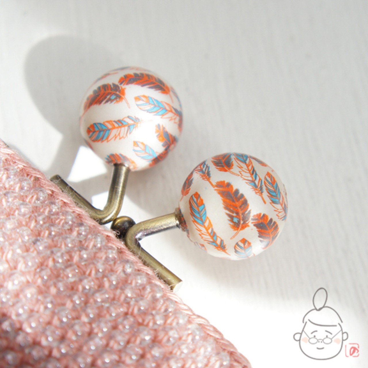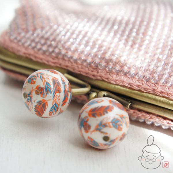 フェザー模様がプリントされた大きめパールをつまみに使用しました。