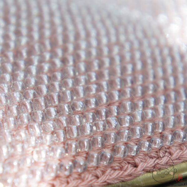 クリアの3mmビーズを、ひとつぶづつ全面に編み込みました。