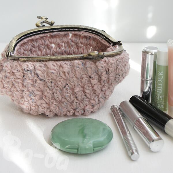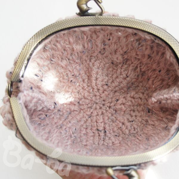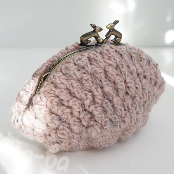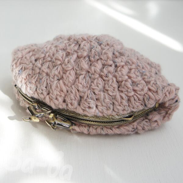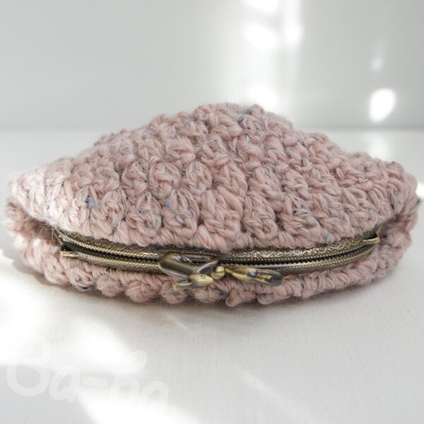 ツイード調「パプコーン編み」の編み地をがま口に仕上げました。