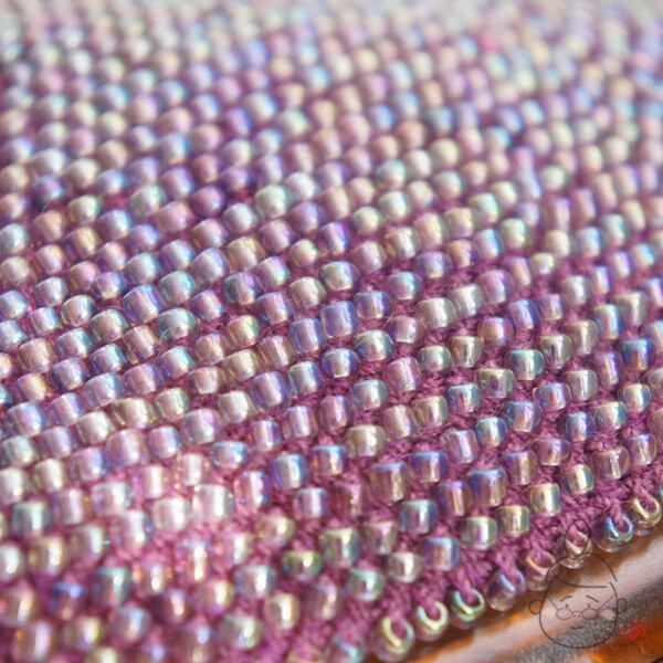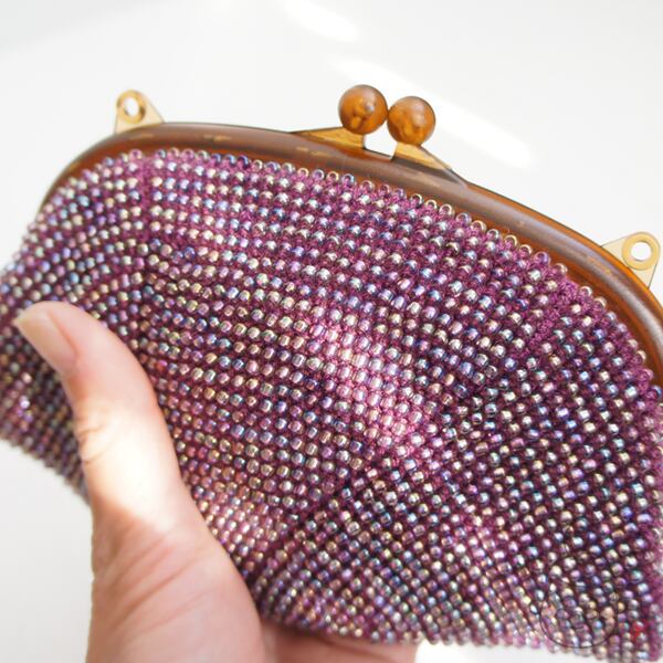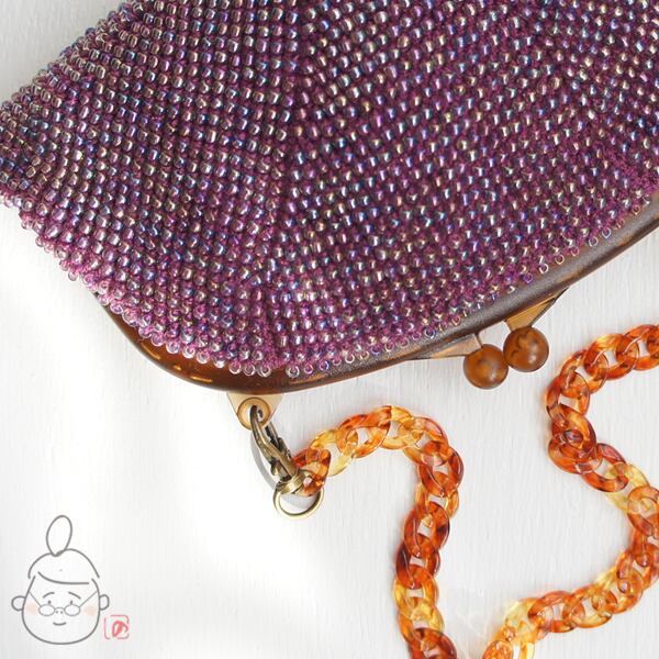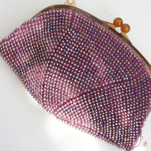 全面にガラスビーズを編み込んでプチバッグを制作しました。