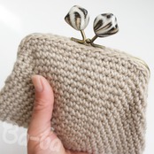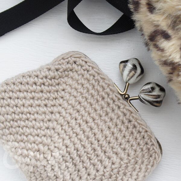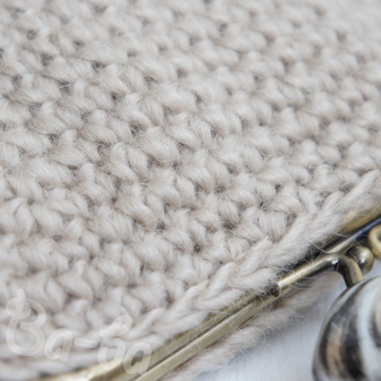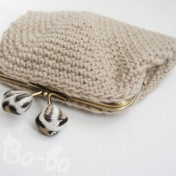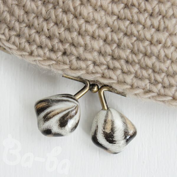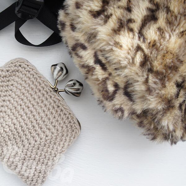 ふんわりと編み上げ、レオパードつまみの口金と組み合わせました。
