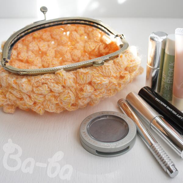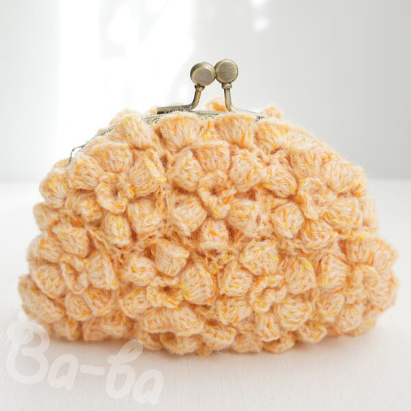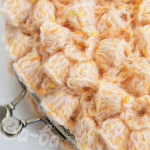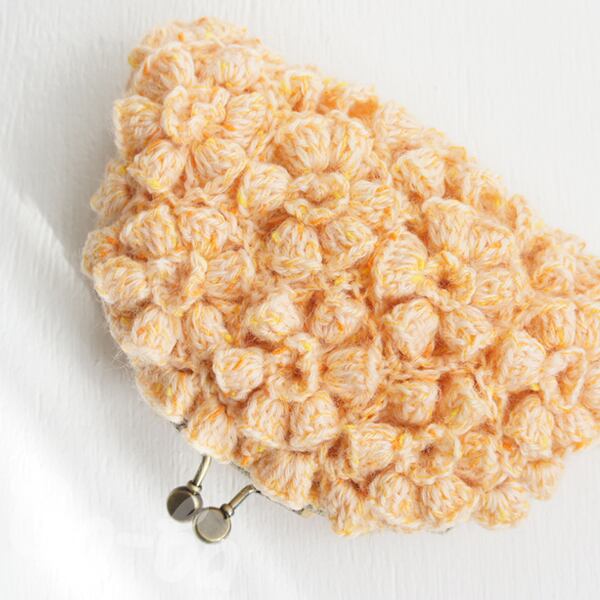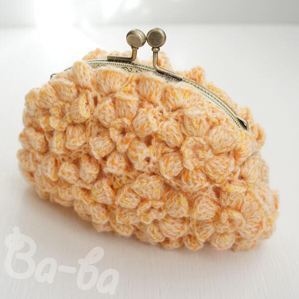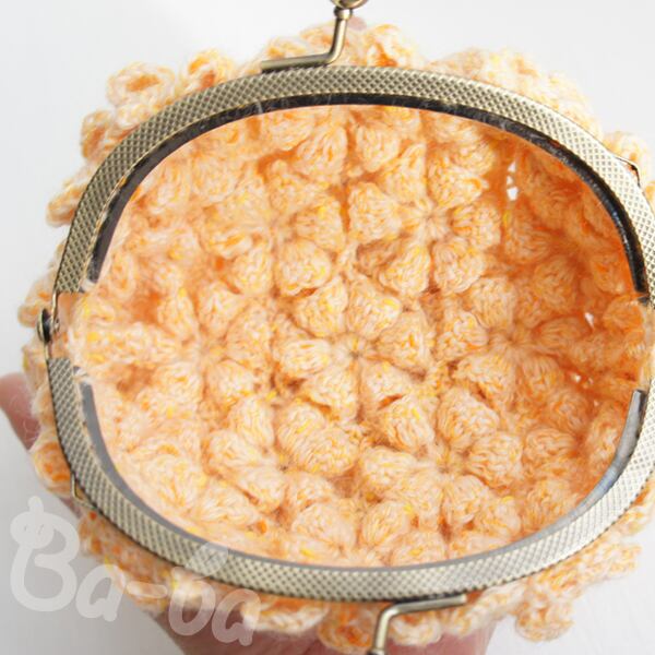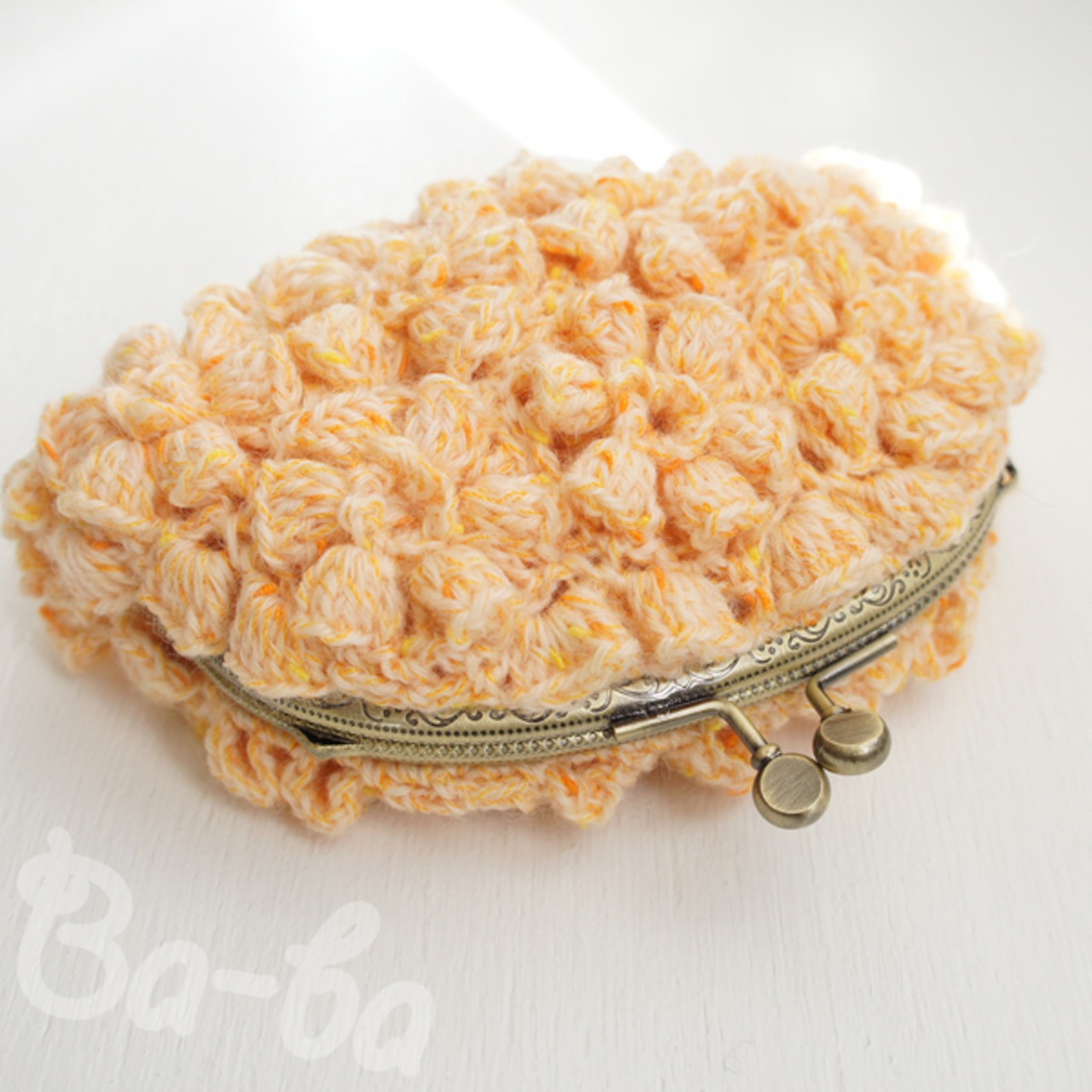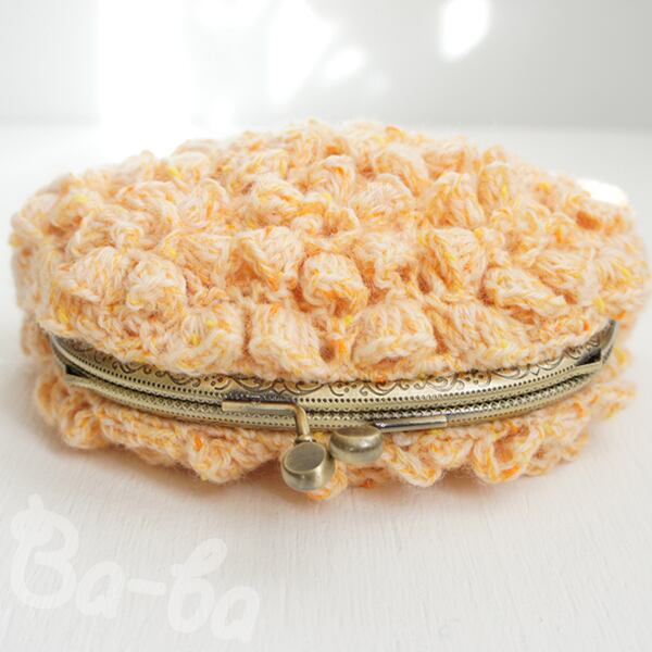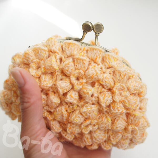 ばあば作、ポピーパフ編みのがま口 (orangepoppy・C1387)