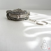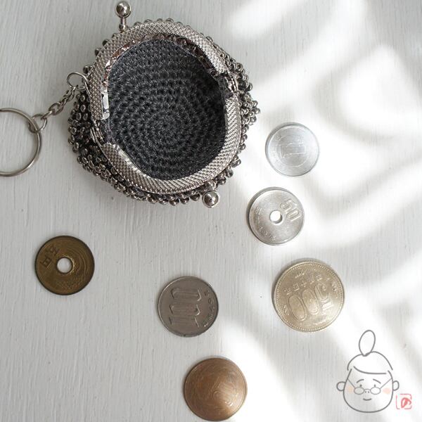 口金 : シルバー(型押し柄)、5cm、チェーンとリング付き
