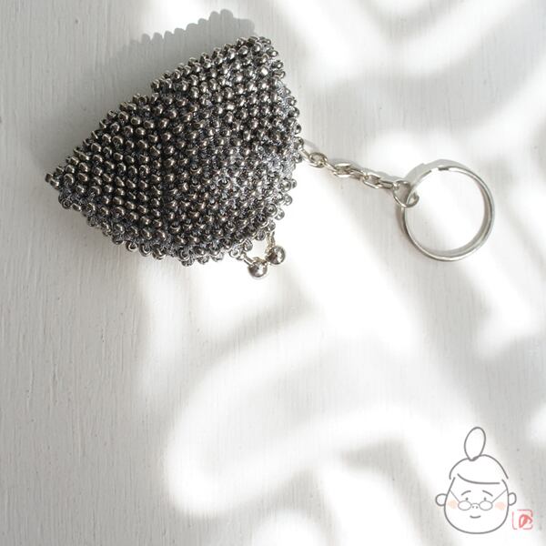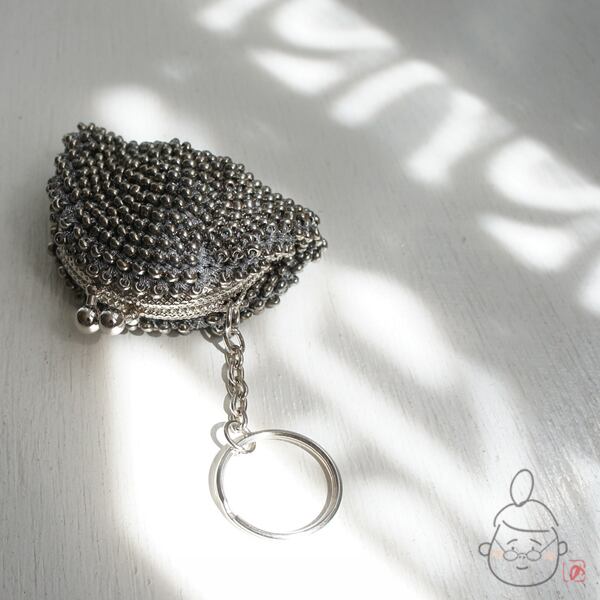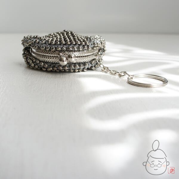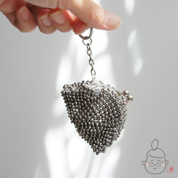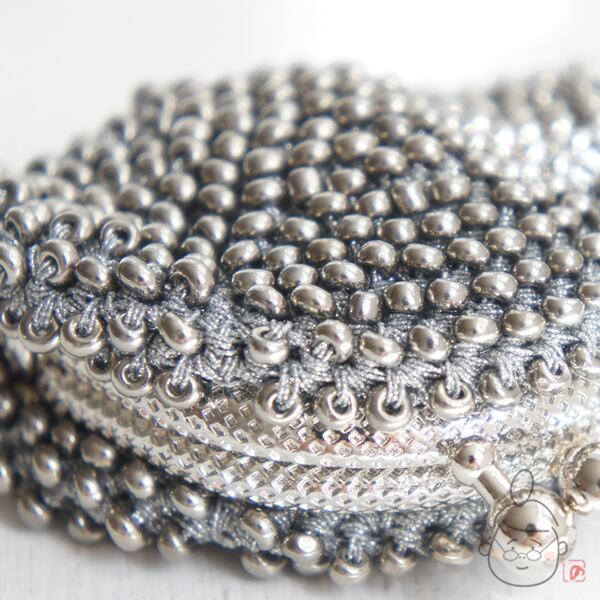キラキラのガラスビーズをひとつぶづつ編み込んだがま口です。