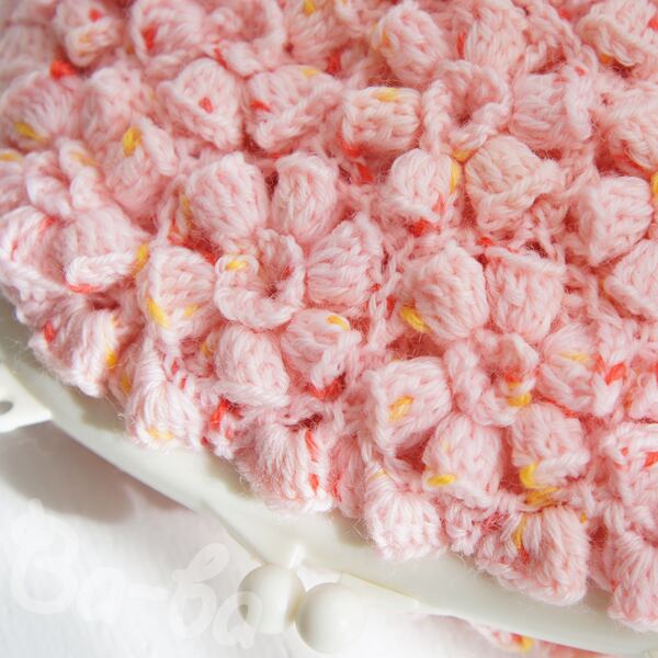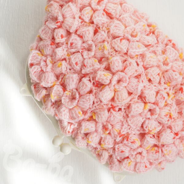 ポピーの花がぎっしり集まったような編み地は、ふんわりとした手触りです。