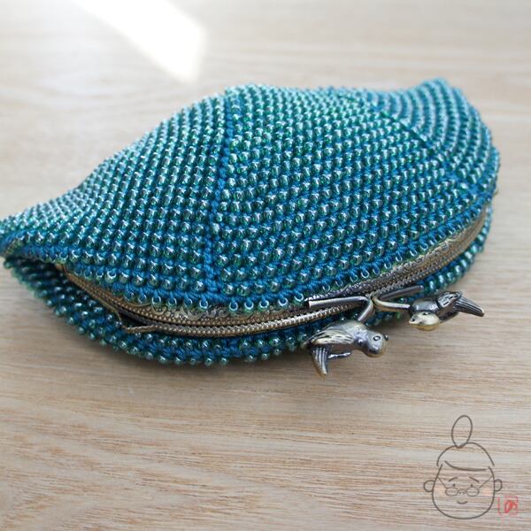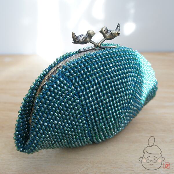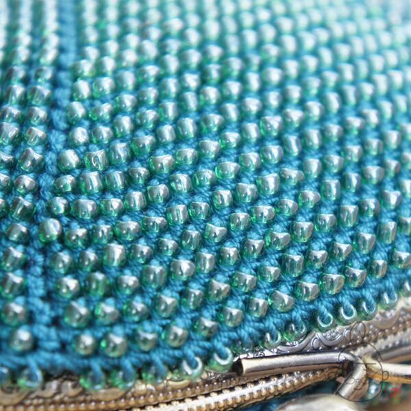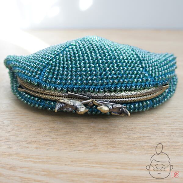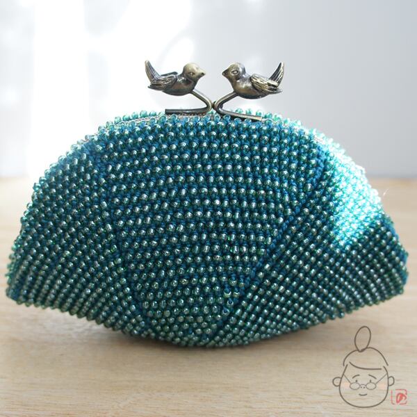 ばあば作☆☆さらに大きめ☆ガラスビーズがま口(vert marin・1369)