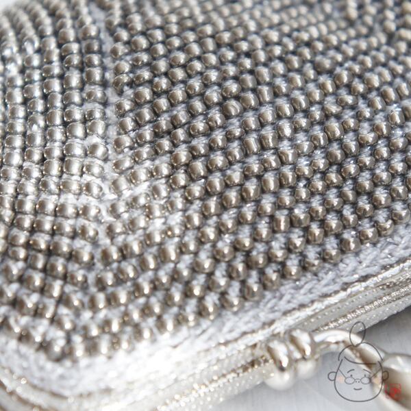 シルバー3mmのガラスビーズを全面に編み込みました。
