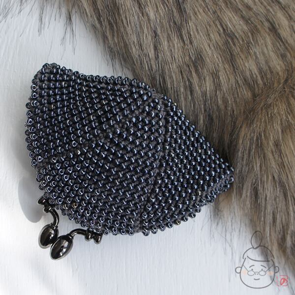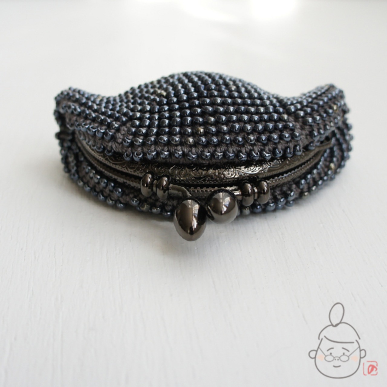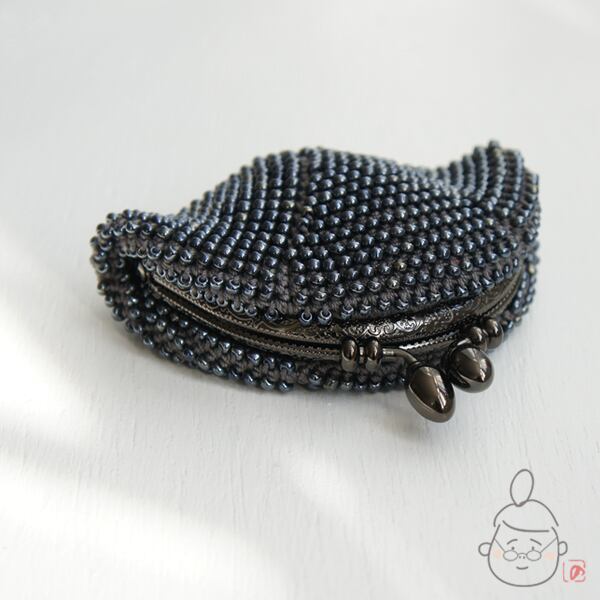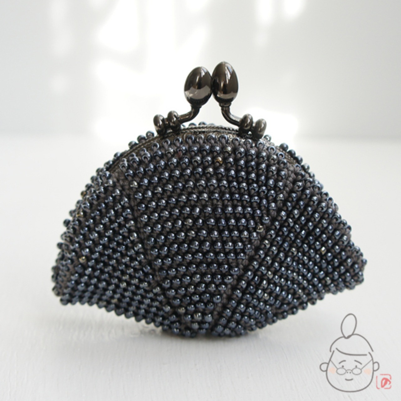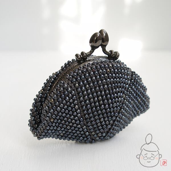 ばあば作☆☆総ガラスビーズのがま口(acier・1387)