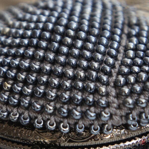 メタルブラック3mmのガラスビーズを全面に編み込みました。