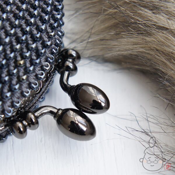 口金 : メタルブラック、どんぐりつまみ、8.5cm、丸型、片カン