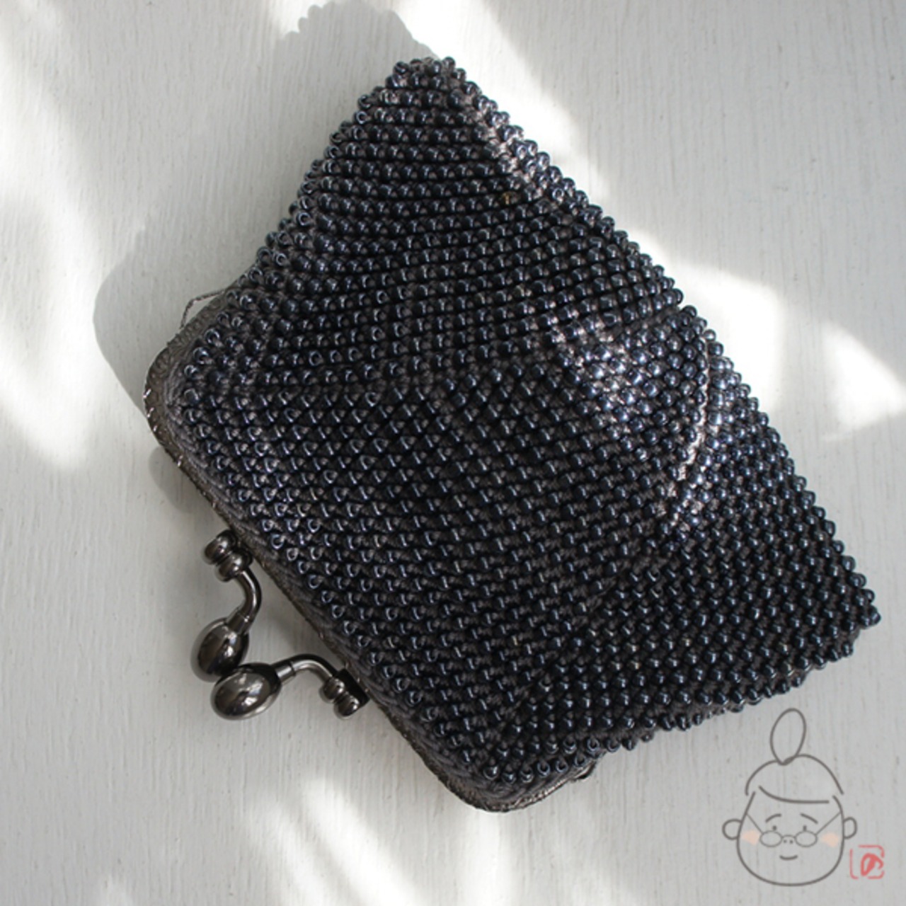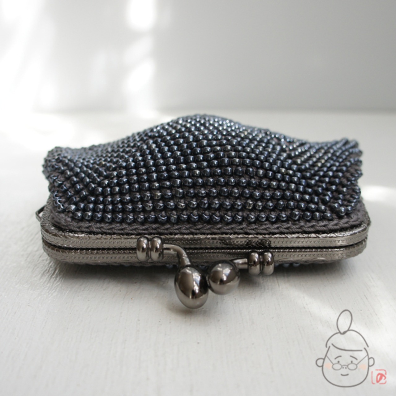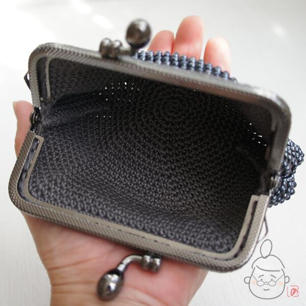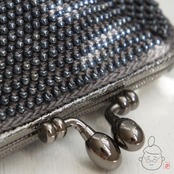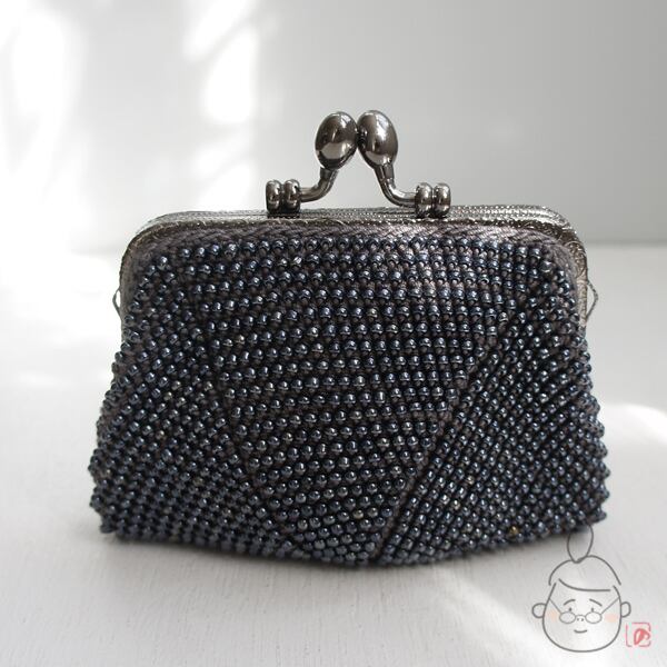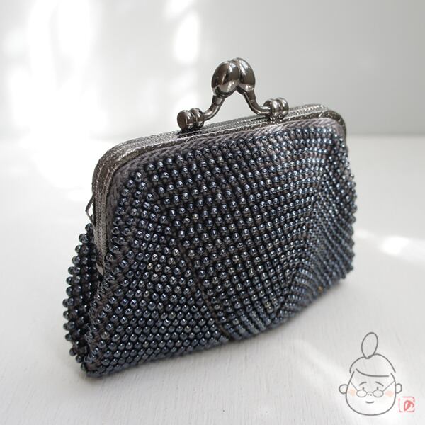 ばあば作☆さらに大きめ・総ガラスビーズのスクエアがま口 (metalicgray・1329)