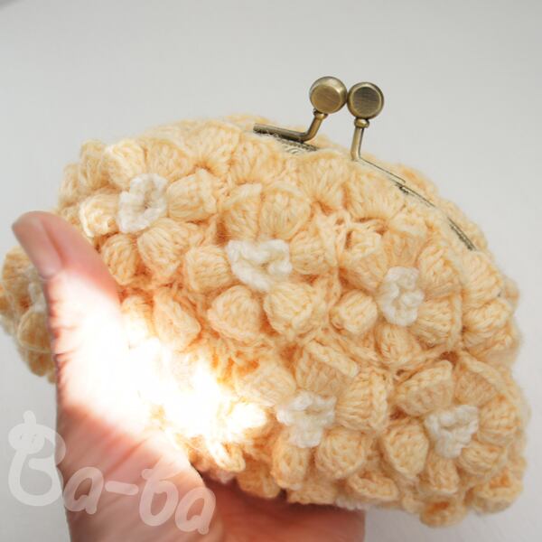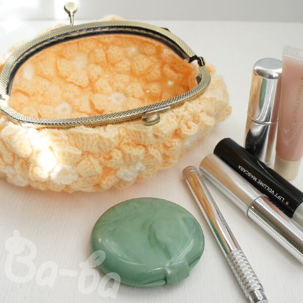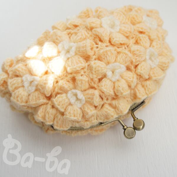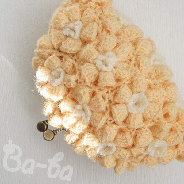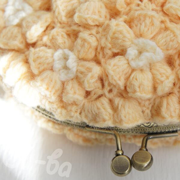 ばあば作、ポピーパフ編みのがま口(fiore・C1402)