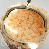 ボリュームのある編み地とシンプルな口金を、縫い付けてしっかり固定しました。