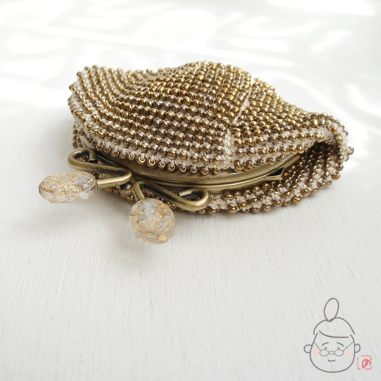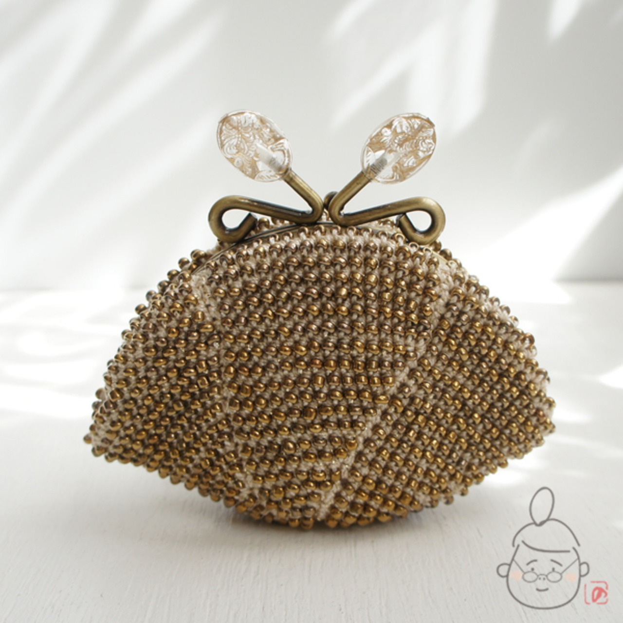 ばあば作♥総ガラスビーズのがま口(カメオ・1291)