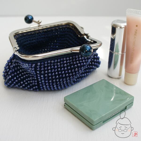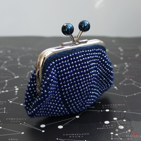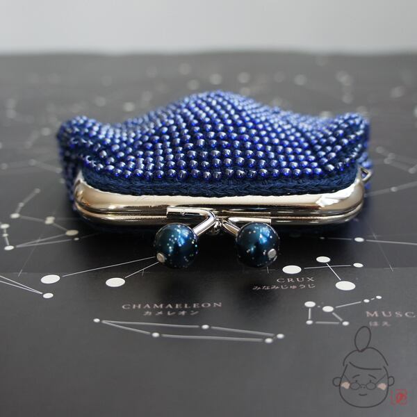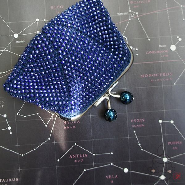 ばあば作☆☆総ガラスビーズのスクエアがま口(Enceladus・1345)