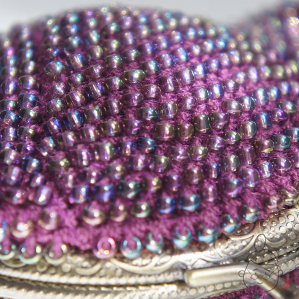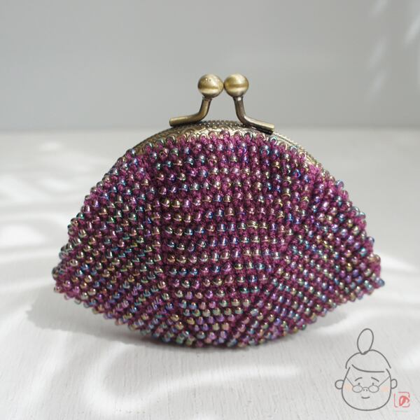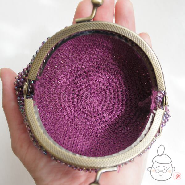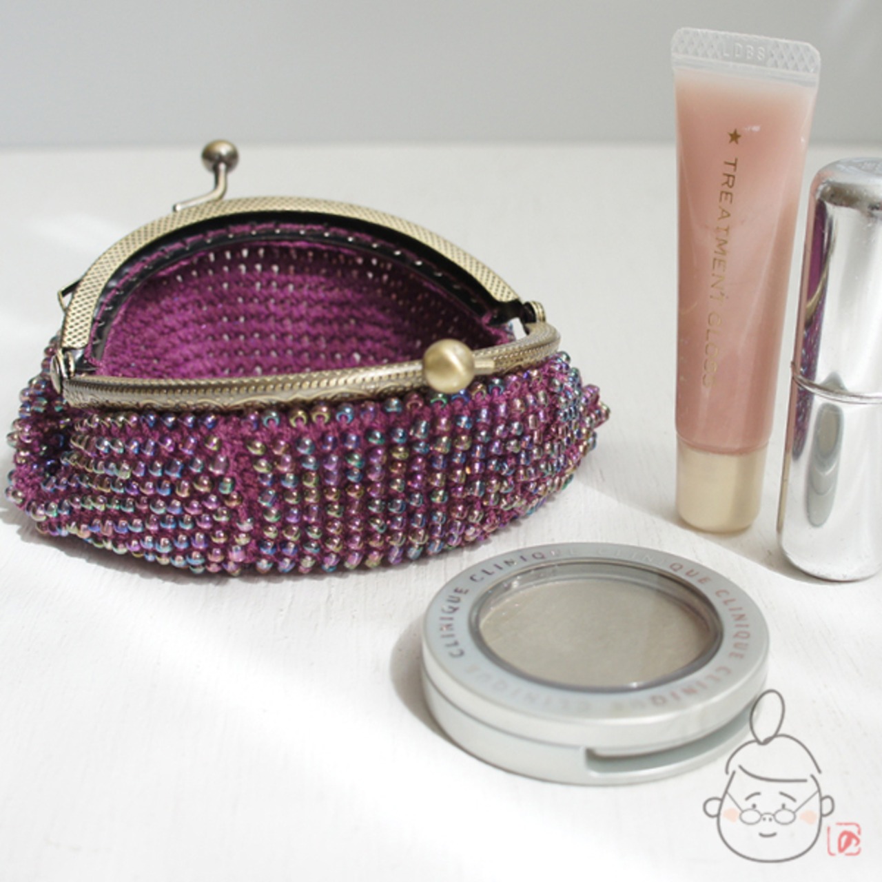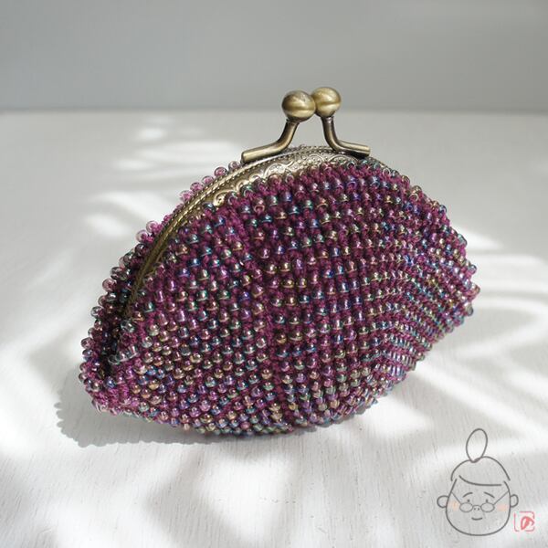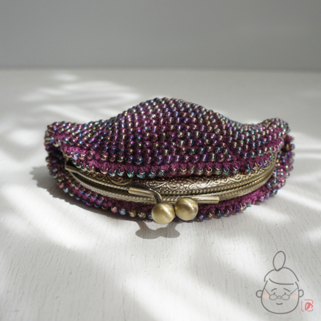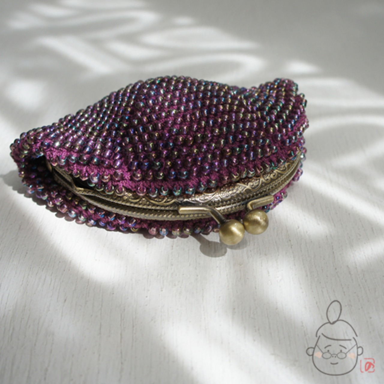 ばあば作☆☆総ガラスビーズのがま口(amethyst・1309)