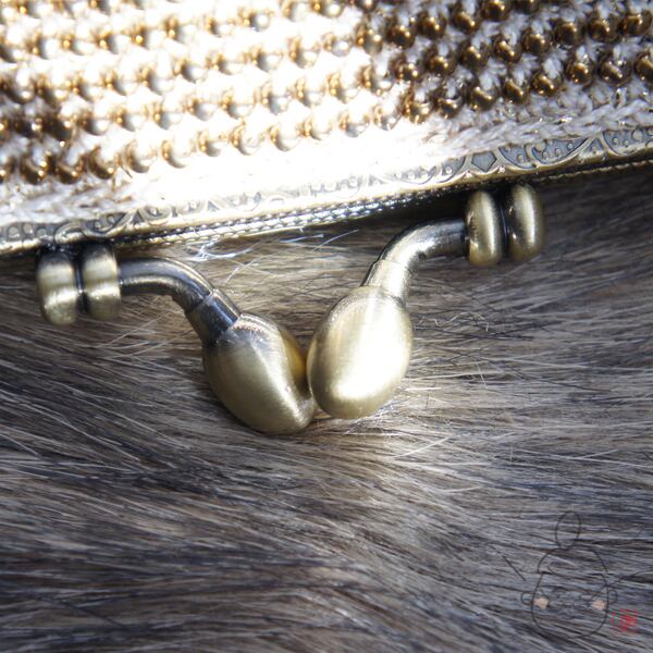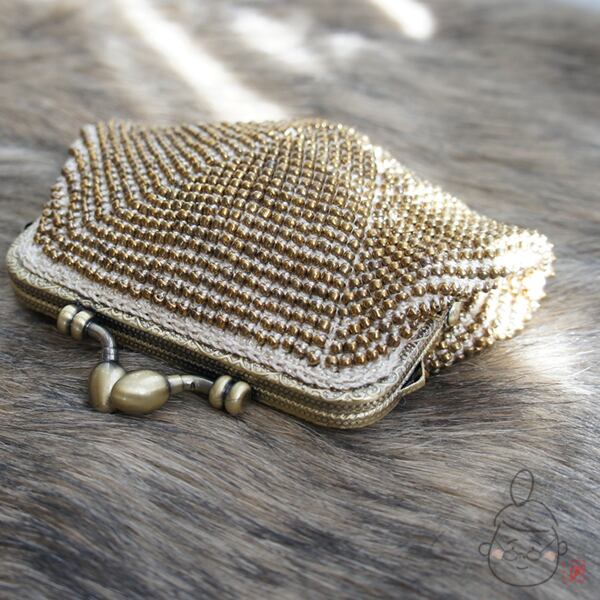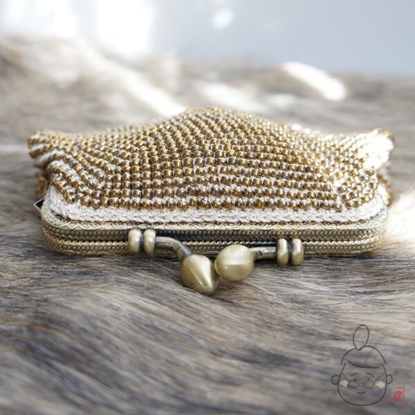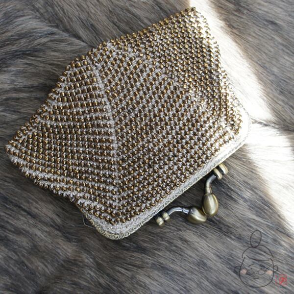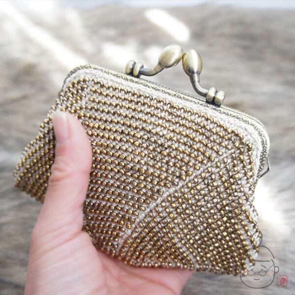 アンティークゴールド3mmのガラスビーズを全面に編み込みました。