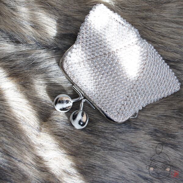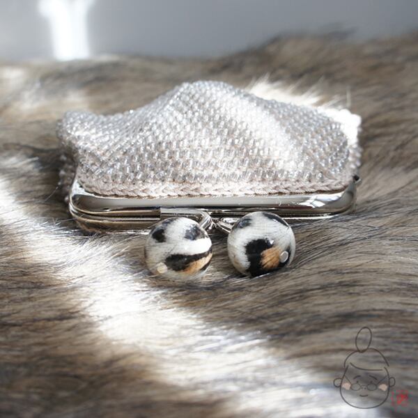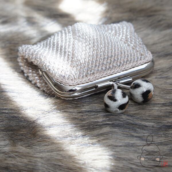 ばあば作☆☆総ガラスビーズのスクエアがま口(ヒョウ・1410)
