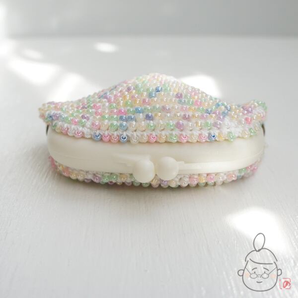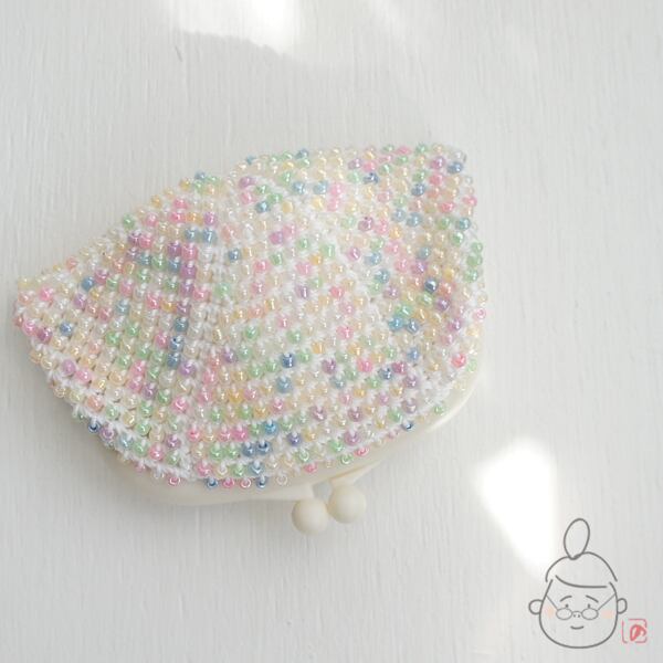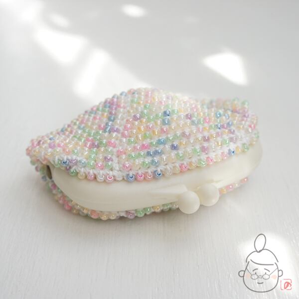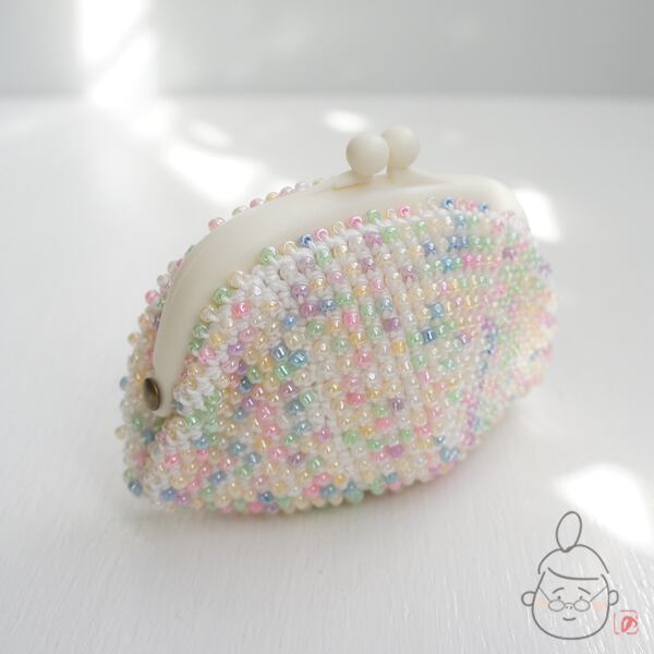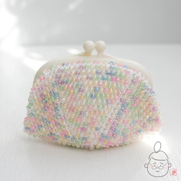 3mmのガラスビーズをひとつぶづつ全面に編み込んだがま口です。