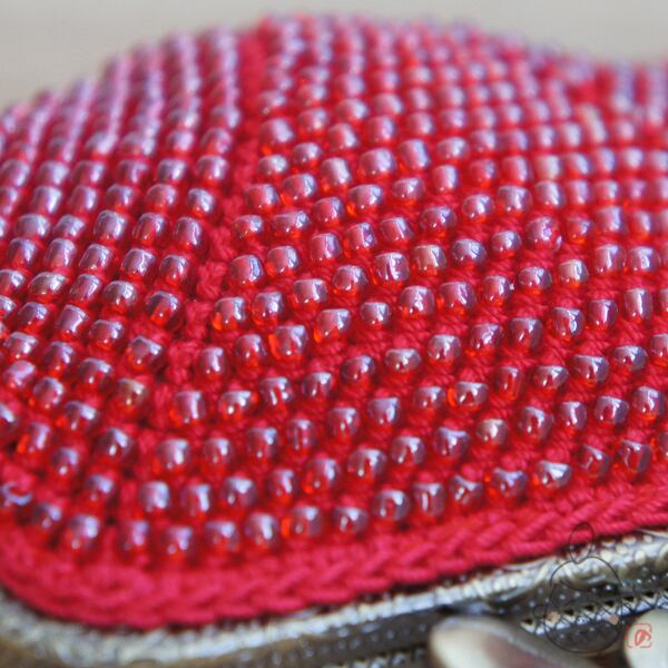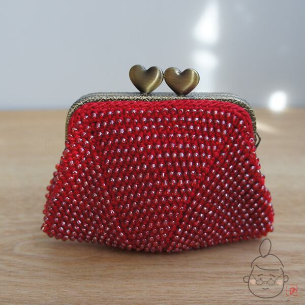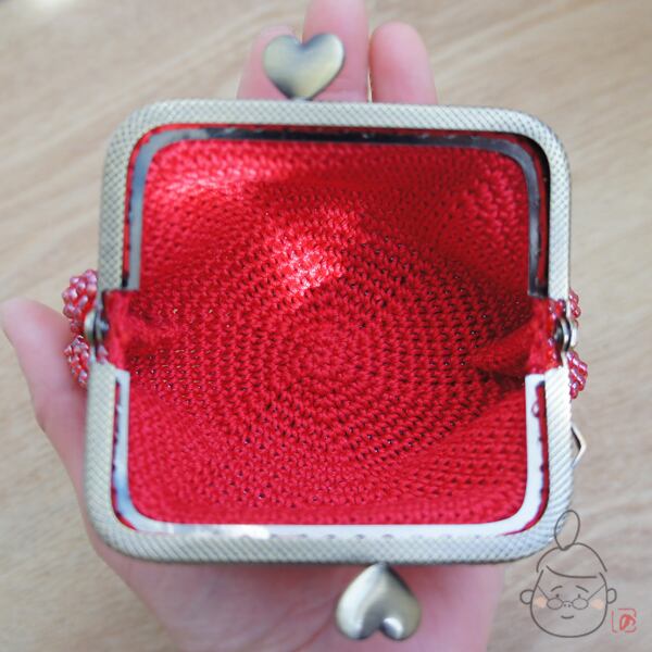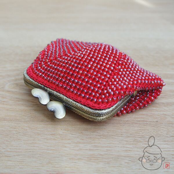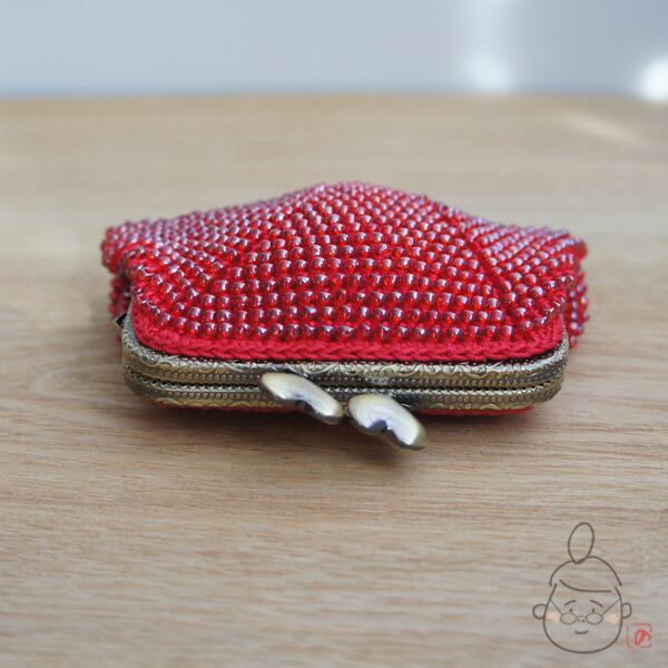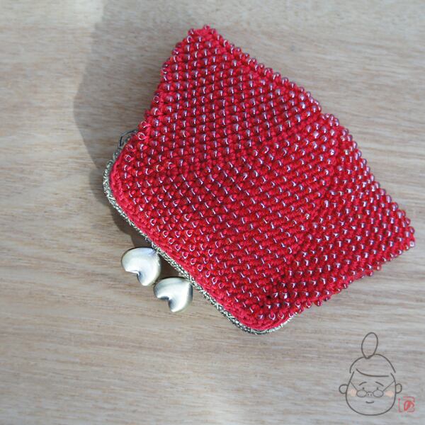 ばあば作☆☆総ガラスビーズのスクエアがま口(cœur・1364)