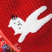 糸 : 混紡毛糸(赤) 、アップリケ : フェルト、刺繍糸