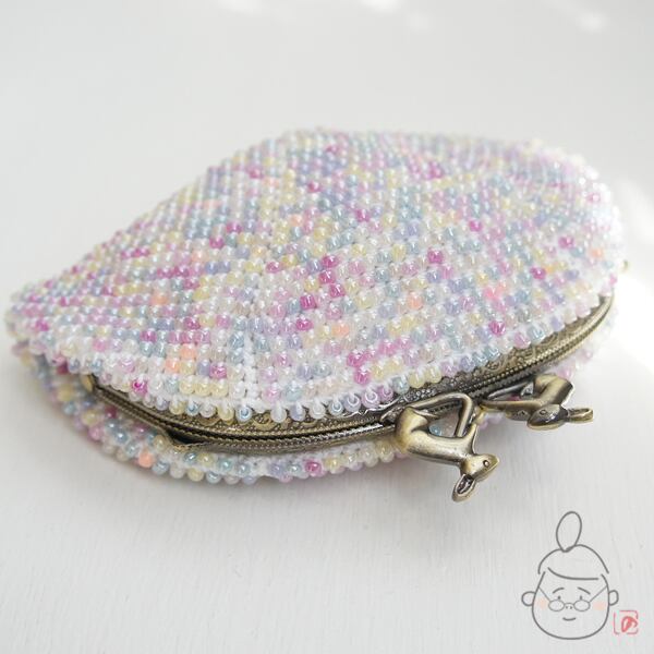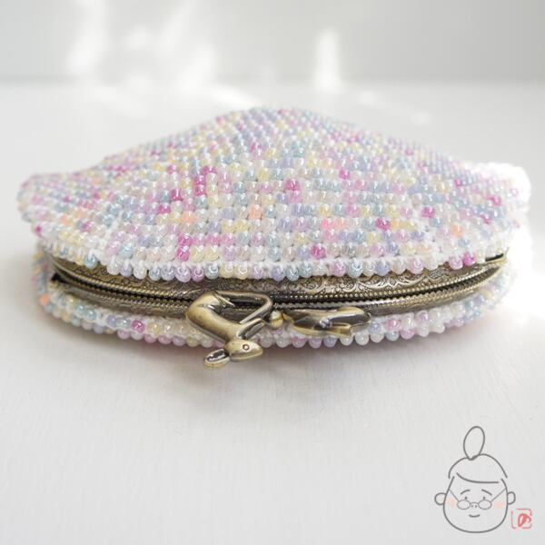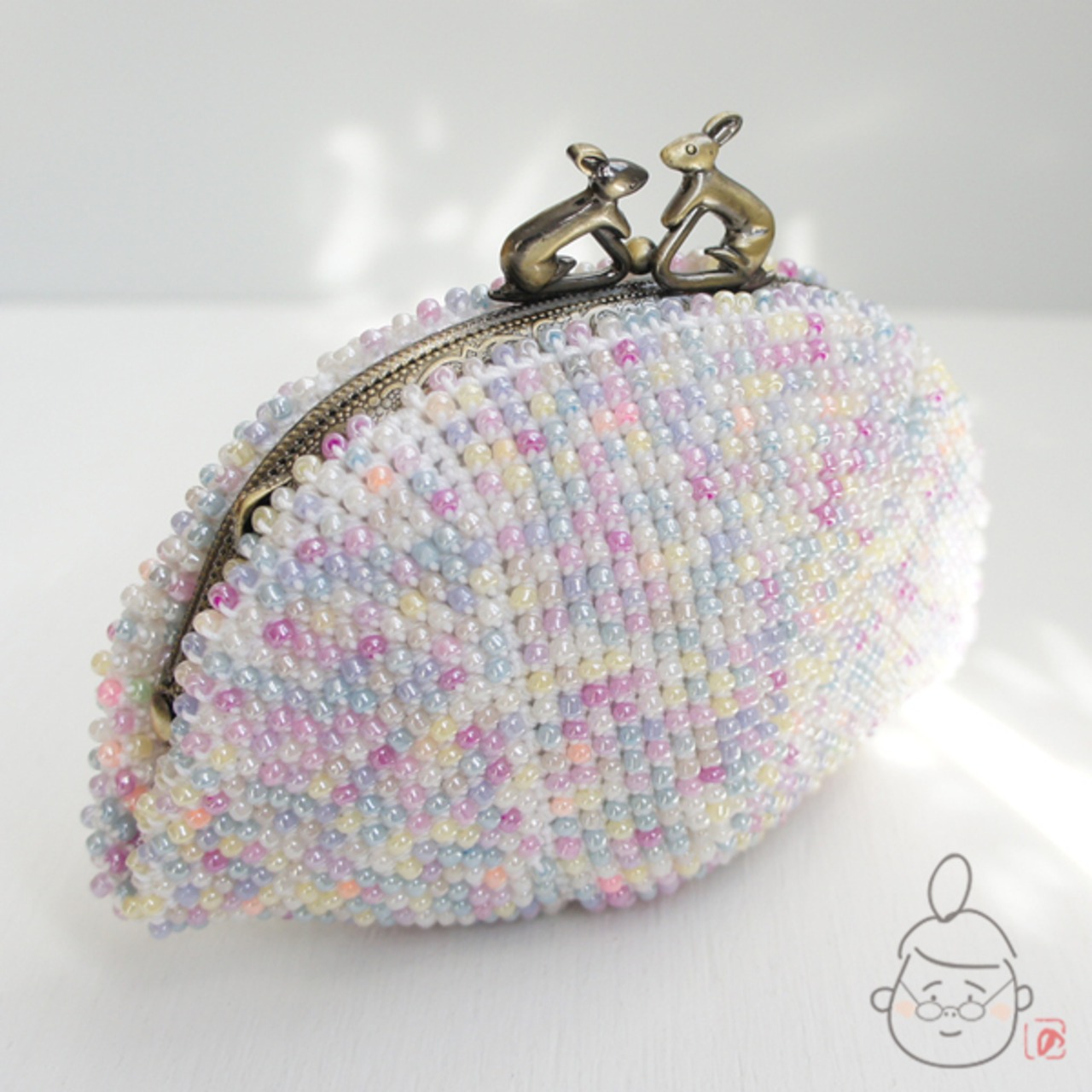 ばあば作☆☆さらに大きめビーズのうさぎがま口(pastel candy・1418)