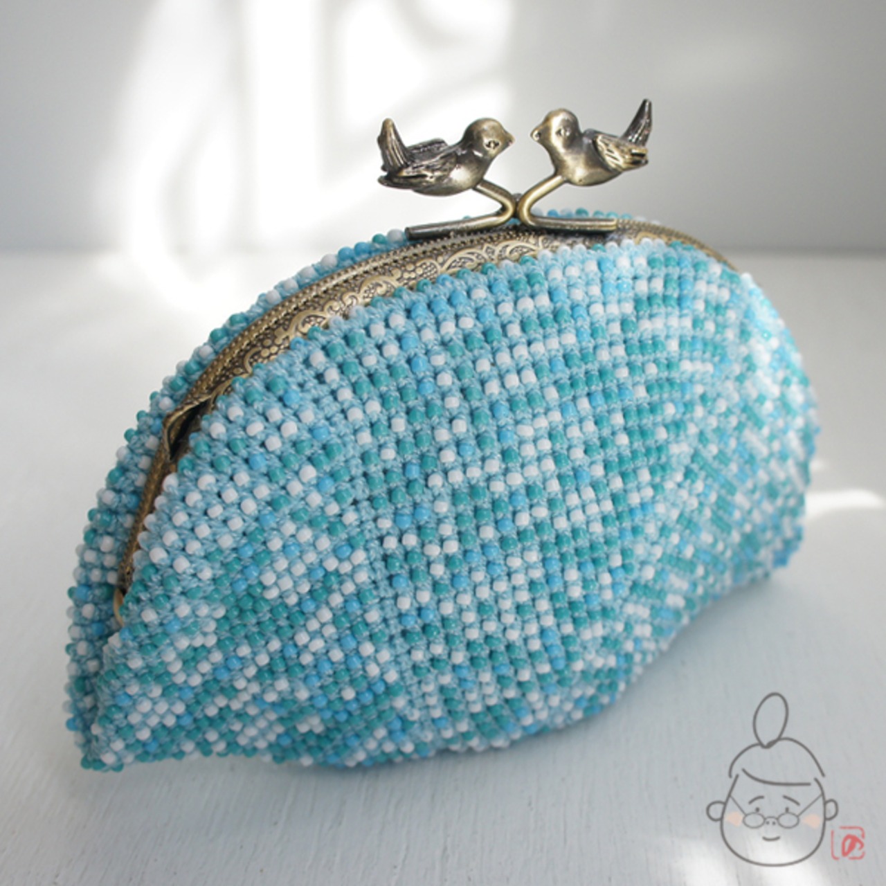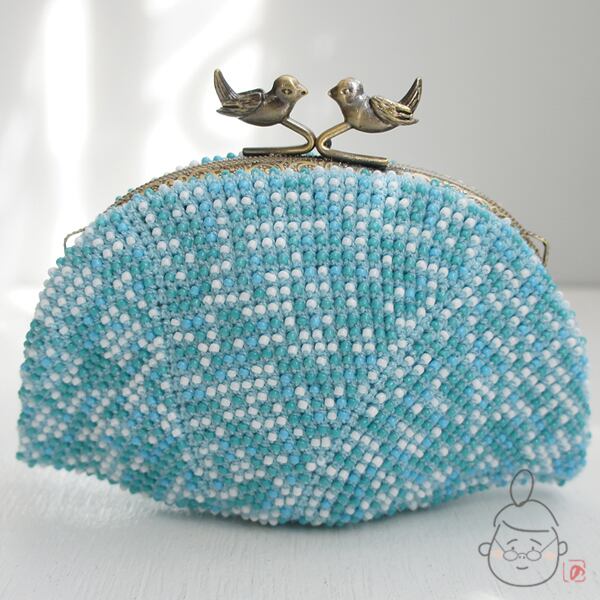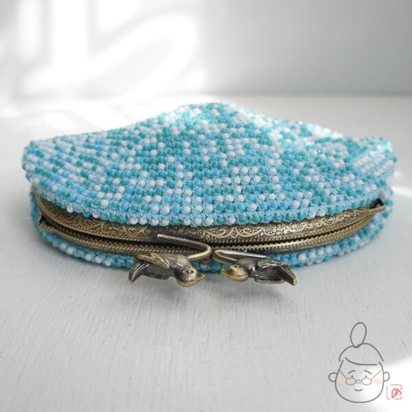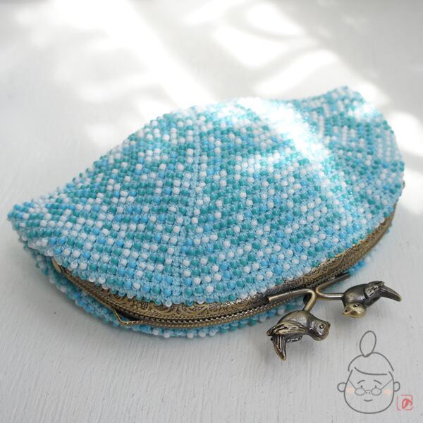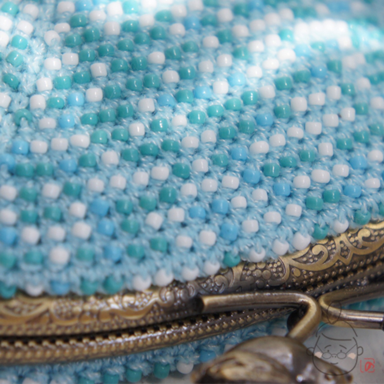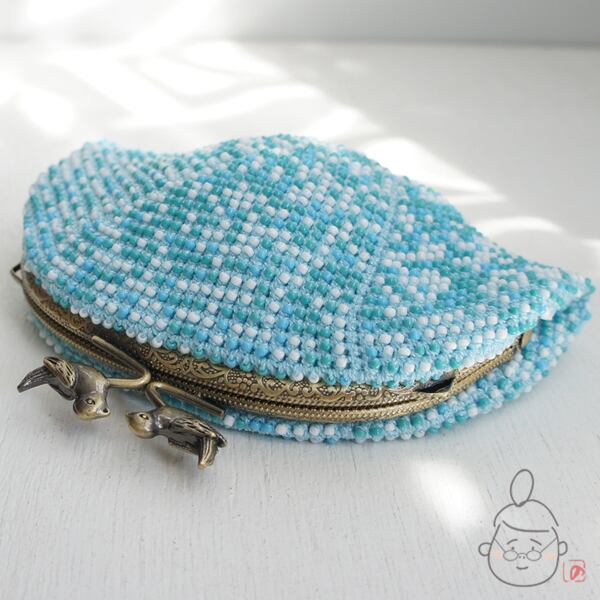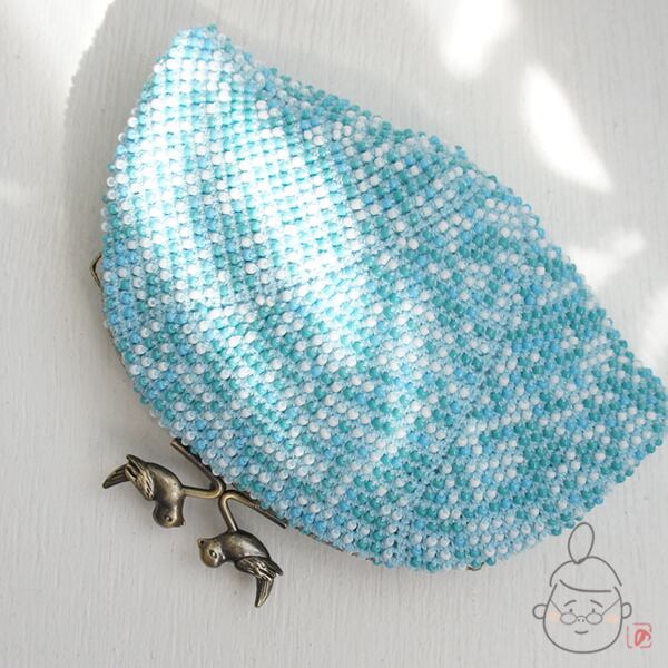 ばあば作☆シードビーズのさらに大きめがま口(blue sky blue・1330)